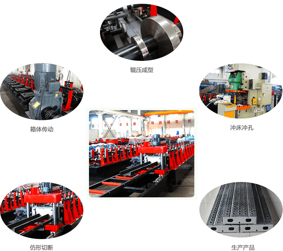 开卷→导向、引料→辊压成型→仿形切断→托板出料