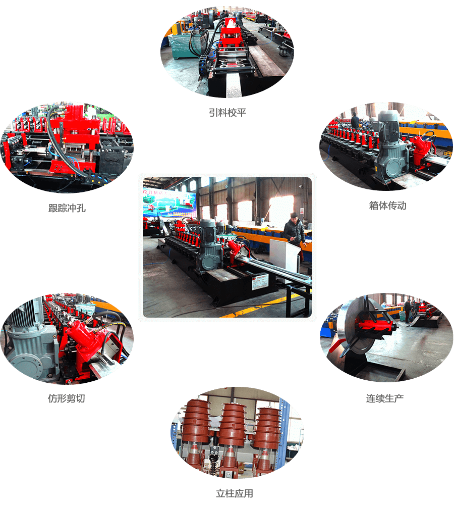 开卷→整平→机械跟踪冲孔→辊压成型→切断翻边→出料