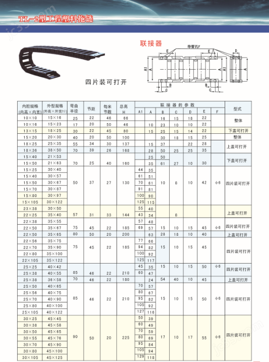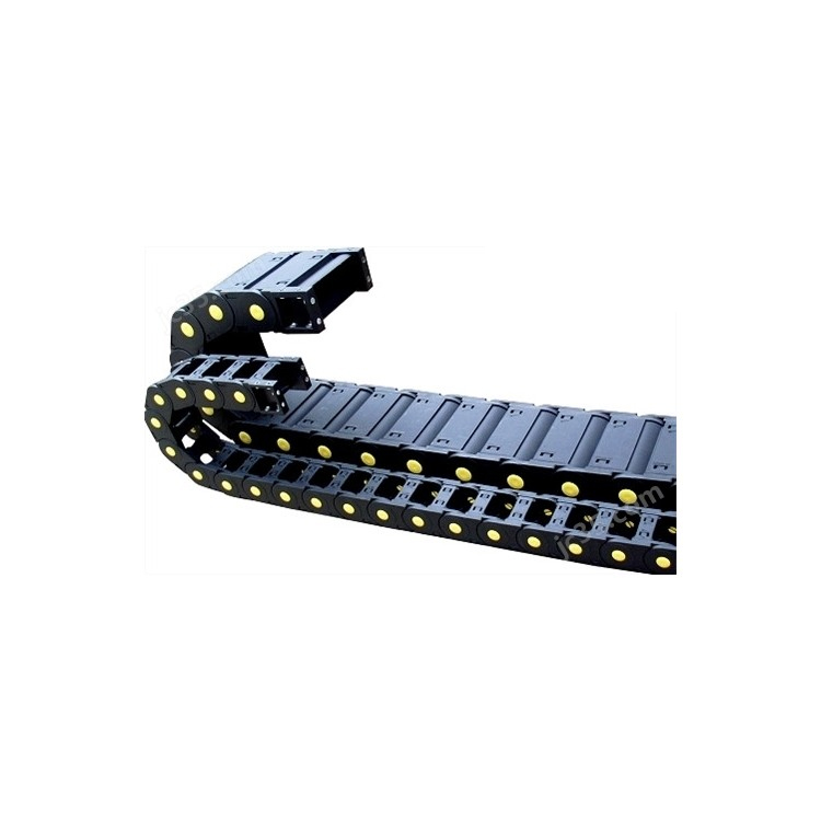 (3) Each section of the chain link is composed of left and right chain plates, as well as top and bottom covers. Each section of the drag chain can be opened for easy assembly and disassembly, without the need for wiring. After the cover is opened, cables, oil pipes, gas pipes, water pipes, and other components can be inserted into the drag chain.