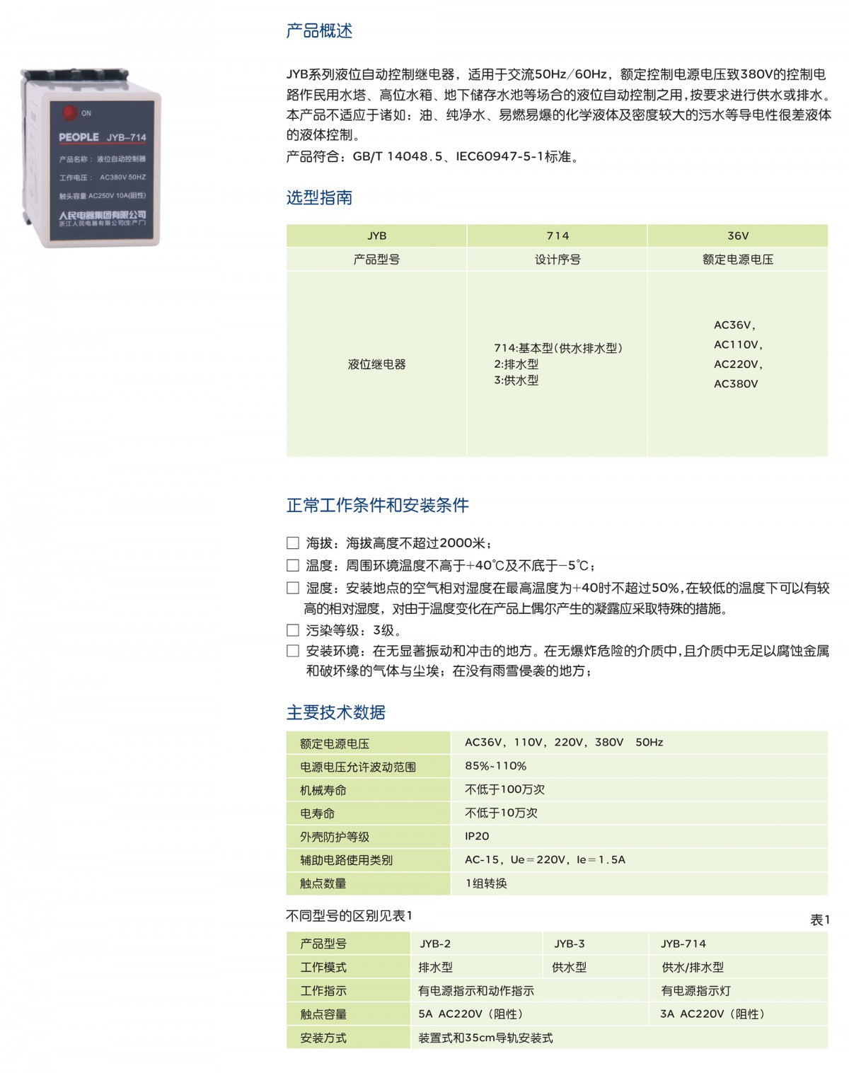 JYB Series Liquid Level Automatic Control Relay