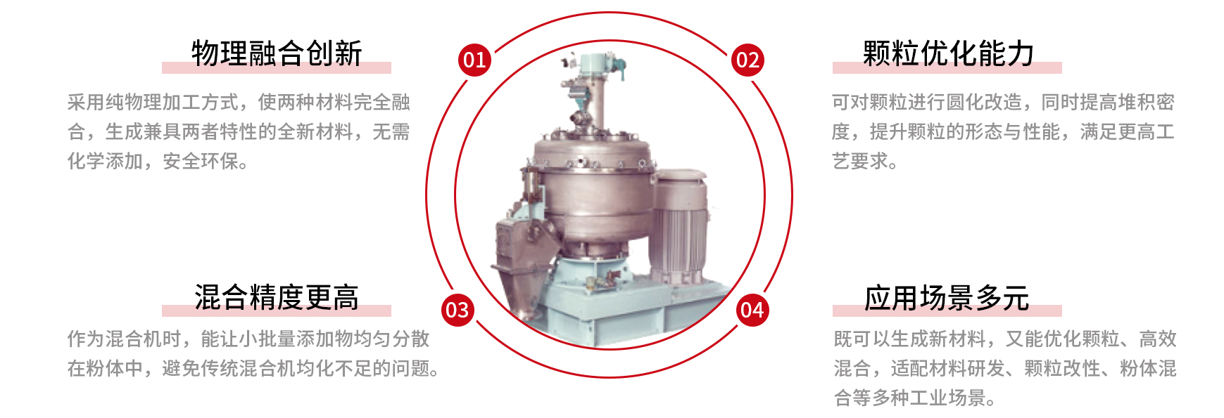 Extensively applicable, particularly suitable for new material research and development, particle modification processing, and high-precision powder mixing.