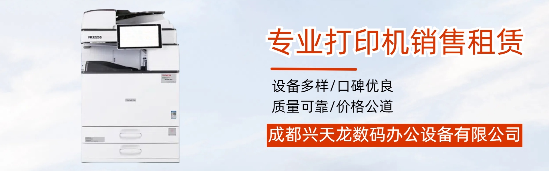 Chengdu Xingtianlong Digital Office Equipment Co., Ltd. is an early-established office equipment company in Chengdu. The company specializes in the sales, leasing, and after-sales service of copiers, printers, computers, and related products. With over a dozen employees, over the years, our company has become an agent for numerous renowned domestic and international brands, and has won various awards granted by manufacturers multiple times. Creatively, we have proposed the business slogan "Customers are not gods but friends," ensuring our clients enjoy a genuinely worry-free shopping experience, smooth usage, and hassle-free maintenance. To meet the diverse needs of our extensive clientele, our company represents a range of brands in equipment, including copy machines and printers such as方正, Sharp, Kyocera, HP, and more, serving as authorized sales and service agents for these brands. We also offer genuine consumables, a variety of original parts, and equipment mainten...