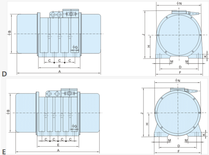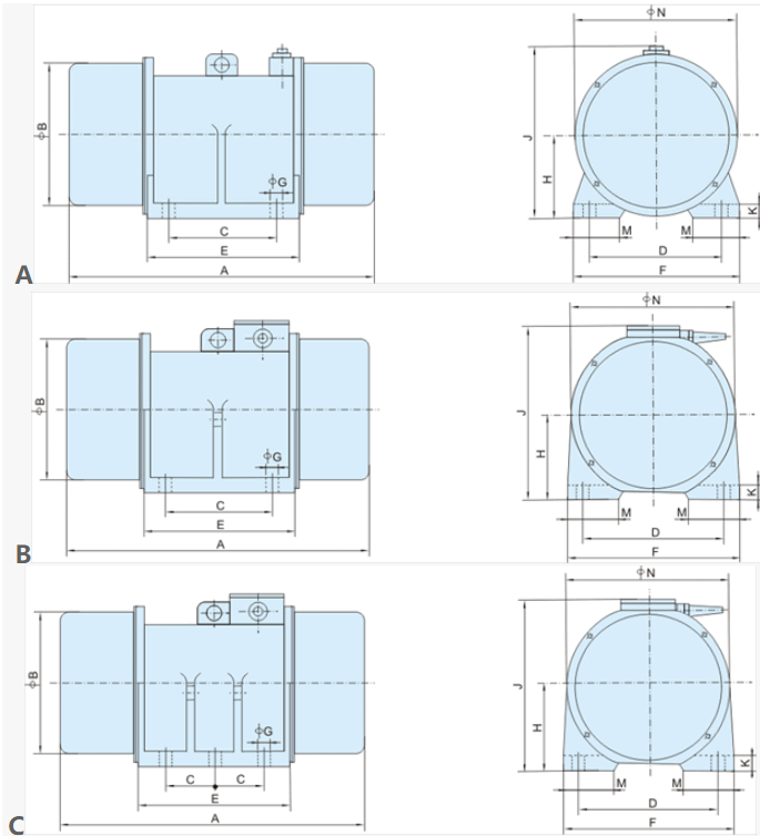 The XVM-A series vibration motor features adjustable eccentric blocks installed at both ends of the double-extended rotor shaft, utilizing the centripetal force generated by the rotation of the eccentric blocks to produce excitation force. The vibration motor offers high excitation force, low energy consumption, low noise, and long lifespan. It is suitable for bin wall vibration in silos, hoppers, and chutes, as well as the excitation source for various vibration equipment like self-synchronous linear vibratory screens, vibratory feeders, and conveyors. It is an ideal equipment for metallurgy, mining, coal, building materials, chemical industries, and more, with a wide range of applications for vibratory screens.