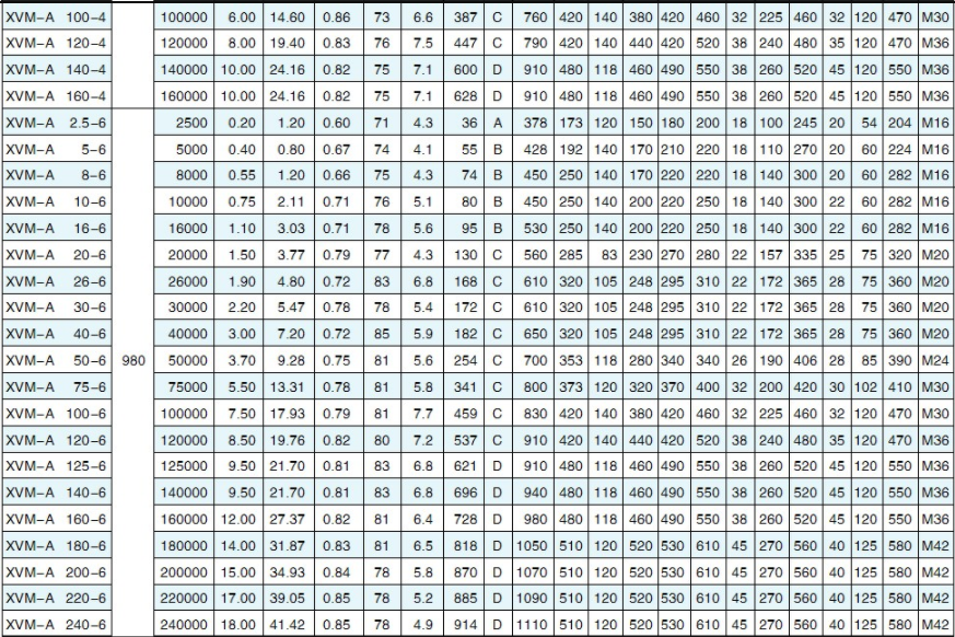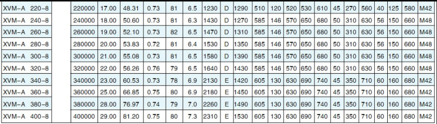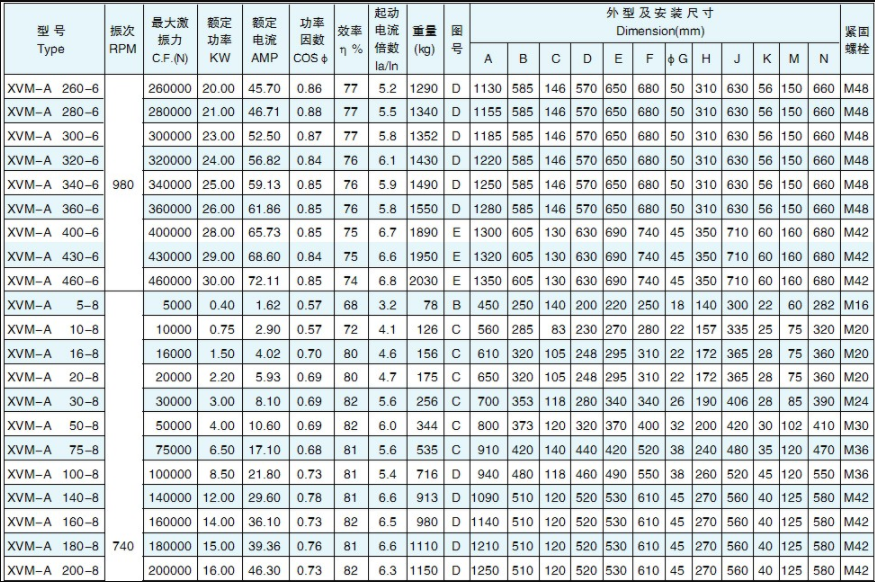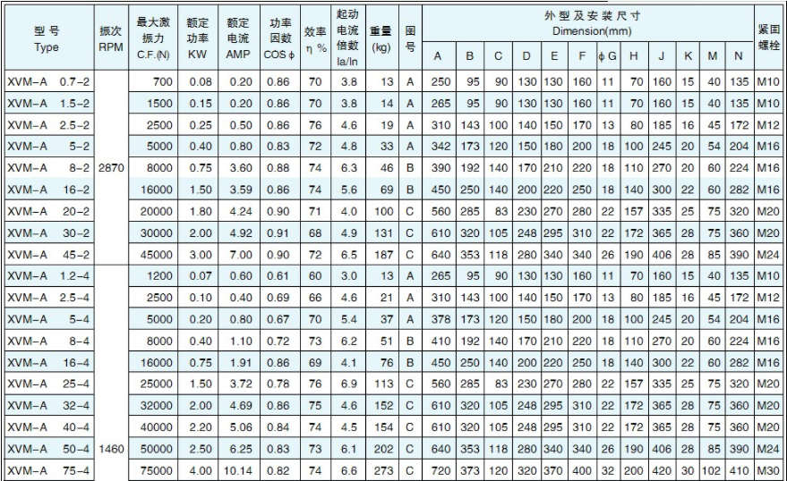 Technical Parameters of XVM-A Series Vibration Motors: