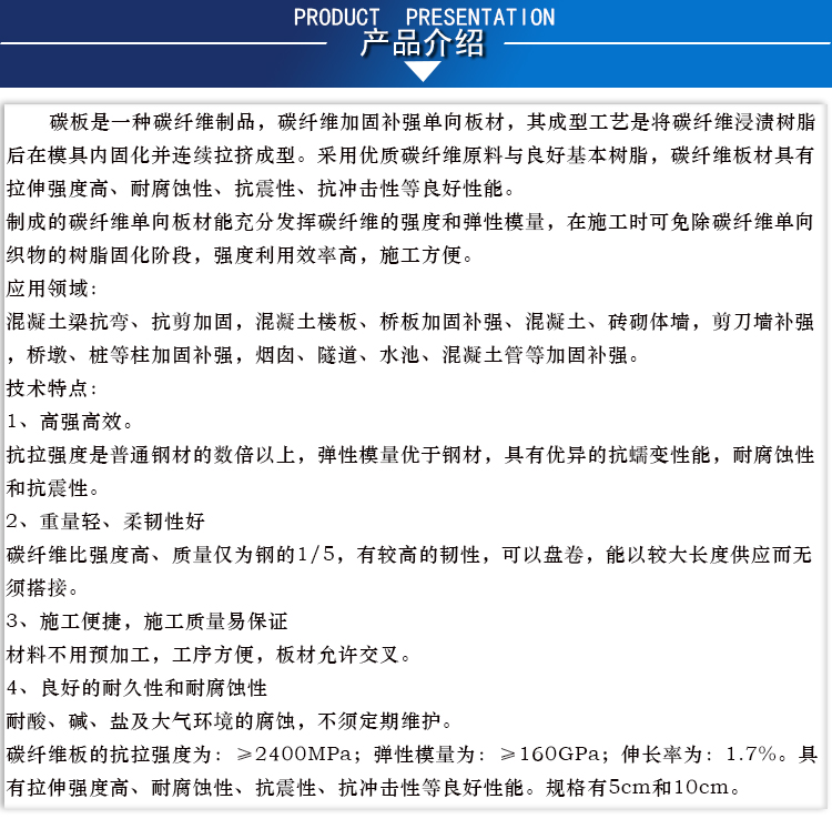 Carbon Fiber Reinforcement Plate for Building Strengthening - High Strength, High Modulus, Low Density