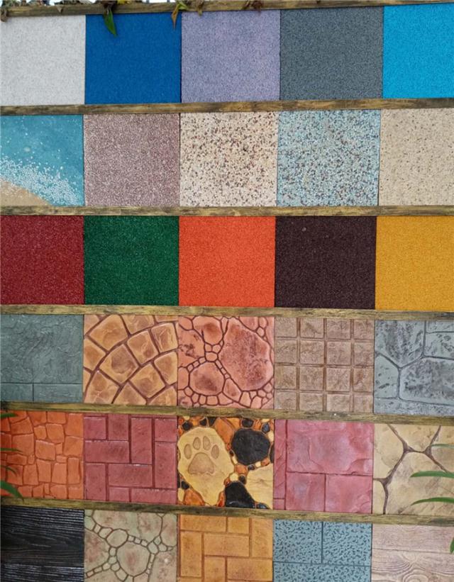 The complete set of engineering materials for embossed paving includes: multi-color solid powder, colorful demolding powder, various graphic molds, surface protectants, etc. We have developed a unique light color system and dual-color demolding powder, technically breaking through the bottleneck of traditional products with dull colors. The colors are lively, the tones blend naturally, complement each other, and elevate the quality to the effect of an artwork.