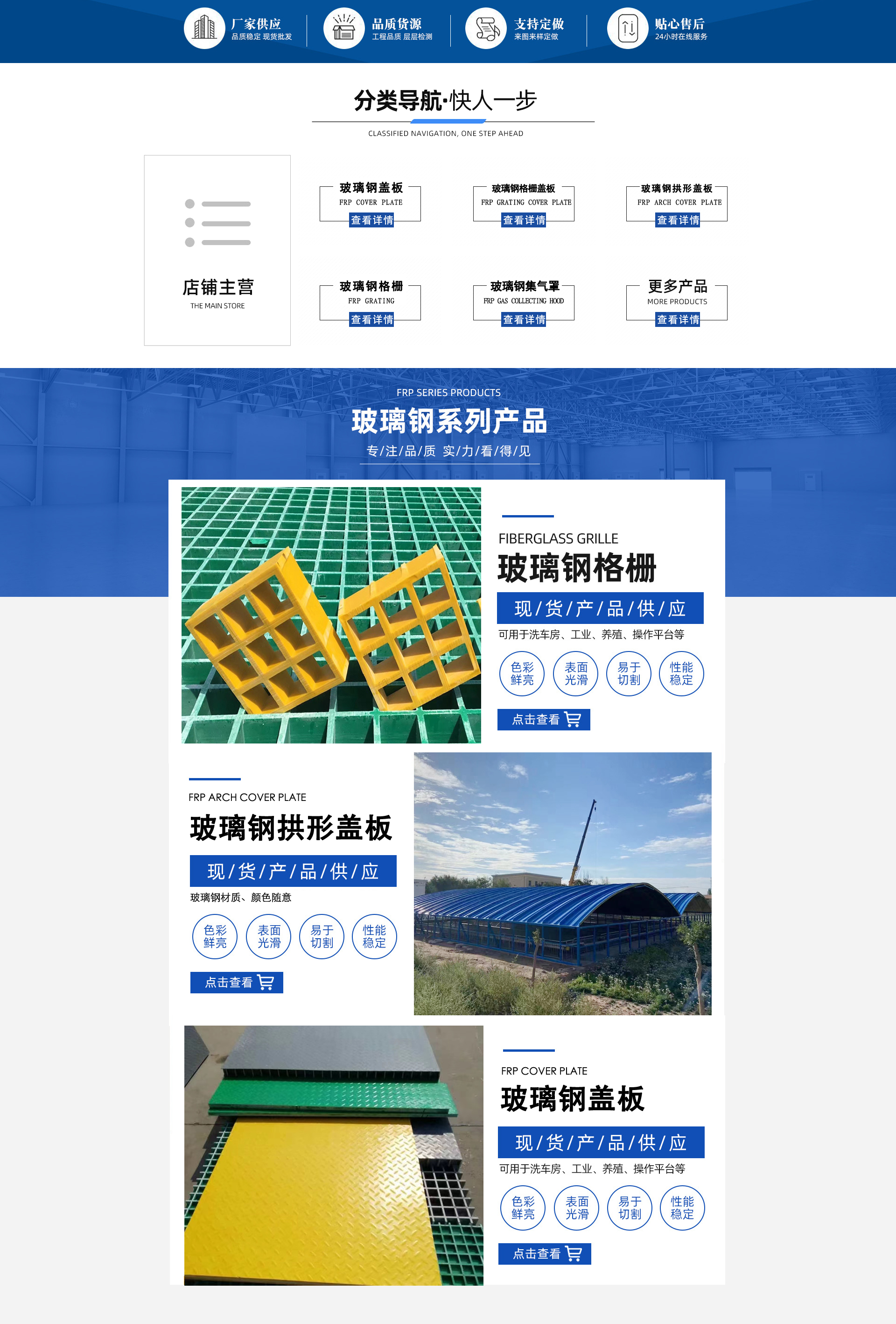 Hebei Yuanli Shengshi FRP Co., Ltd. specializes in FRP grating covers, FRP covers, and FRP arched covers, etc. A company engaged in production and processing, we boast a comprehensive and scientific quality management system. Contact phone: 13831849333Hebei Yuanli Shengshi Fiber Reinforced Plastics Co., Ltd. has gained the industry's recognition for its integrity, strength, and product quality. Welcome friends from all walks of life to visit, guide, and engage in business discussions.