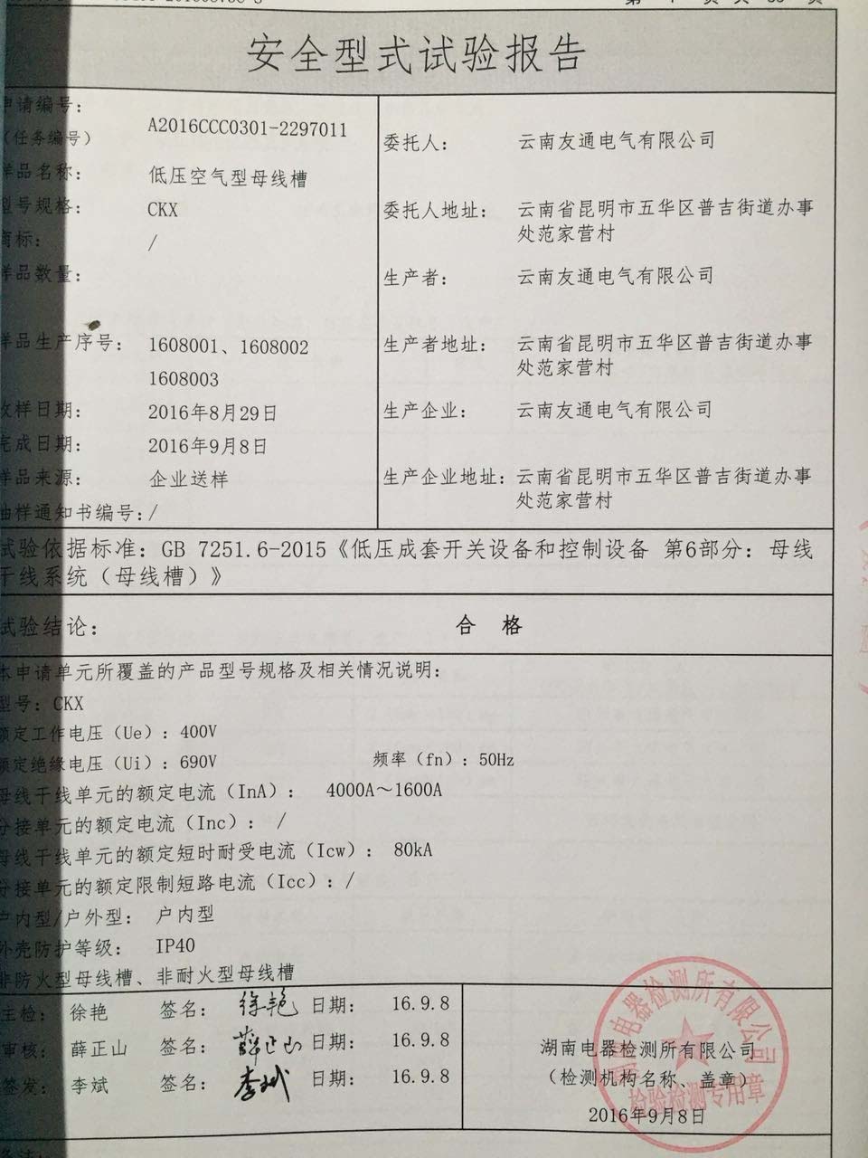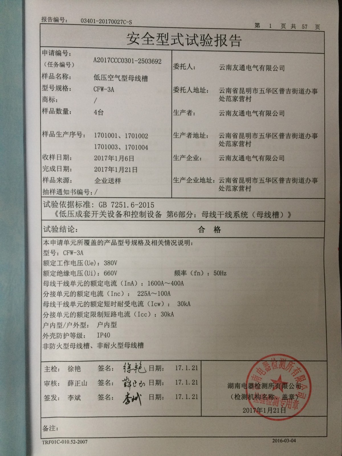 | Issuing Authority: | 湖南电器检验所有限公司 | Issue Date : | 2017-01-21 |