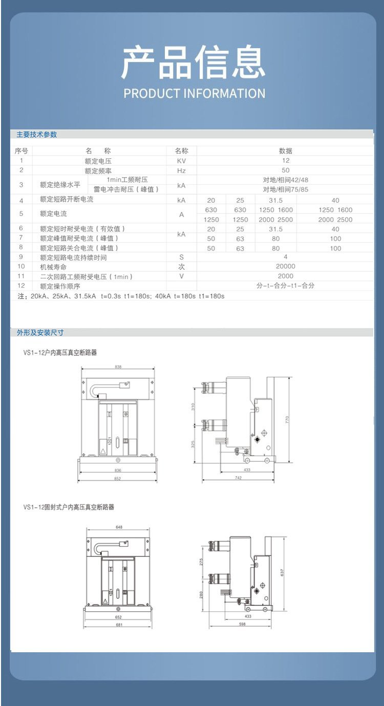 Indoor Vacuum Circuit Breaker VS1 ZN63-12/630A Hand Cart Vacuum Circuit Breaker