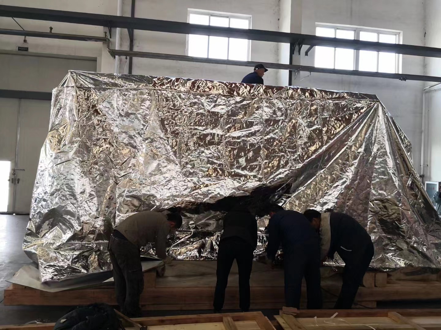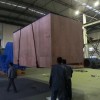 2021年10月21日,沈阳正安包装有限公司为辽宁重型电机制造有限公司包装了一台出口南非的电机。电机净重38吨,由于超高,不得不将电机上的冷却器拆下来。两箱毛重分别为36.5吨和6吨。据用户反映,由于目前我国出口量非常大,船位紧张,船东为提高船仓利用率,要求包装箱能够满足堆码要求,即要求这台电机的两箱能够叠放在一起,也就是说装冷却器的毛重6吨箱要放在电机本体箱上,电机本体箱顶盖要能承受6吨冷却器箱。正安包装为满足用户要求,对两箱进行了精心设计、细致的制造和包装。经过今天包装后试吊和叠码试验,获得圆满成功!