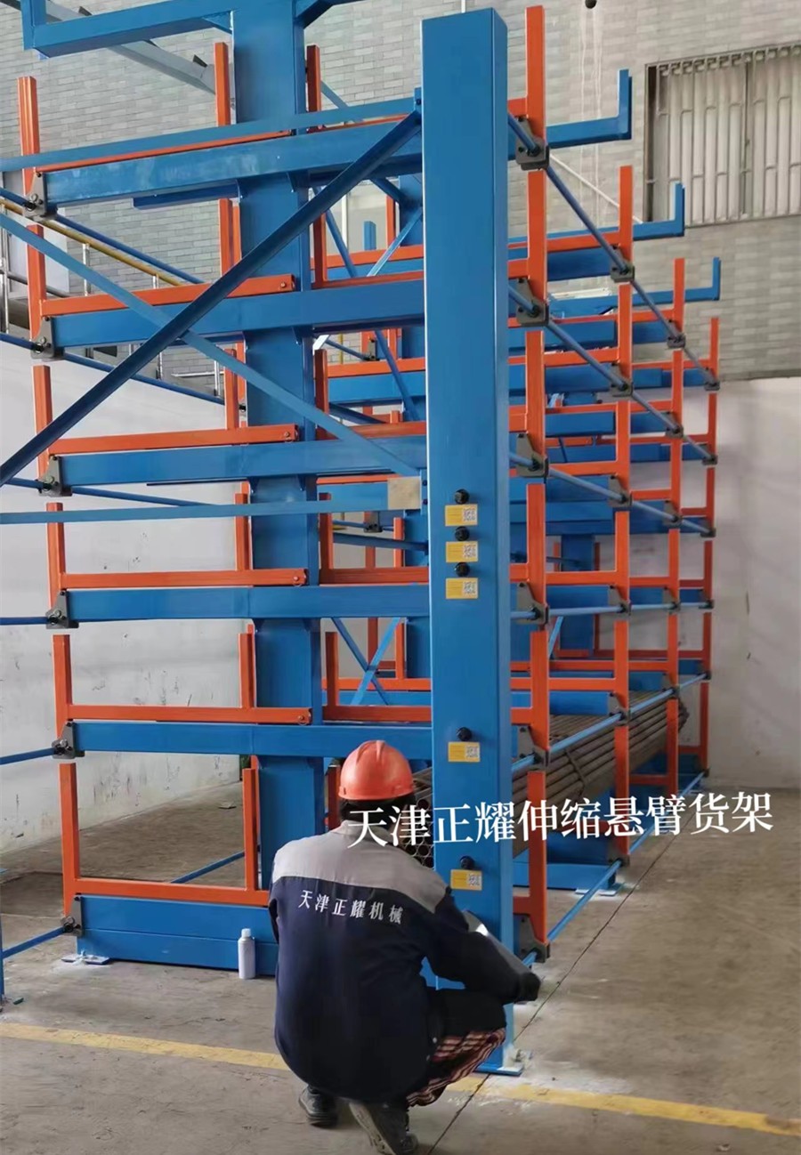 In Zhejiang, a Chinese company, the installation of the telescopic cantilever racking is now complete and operational in the workshop.