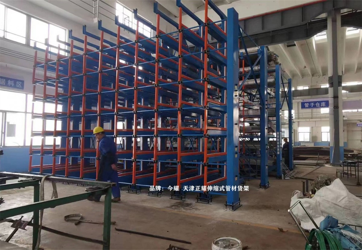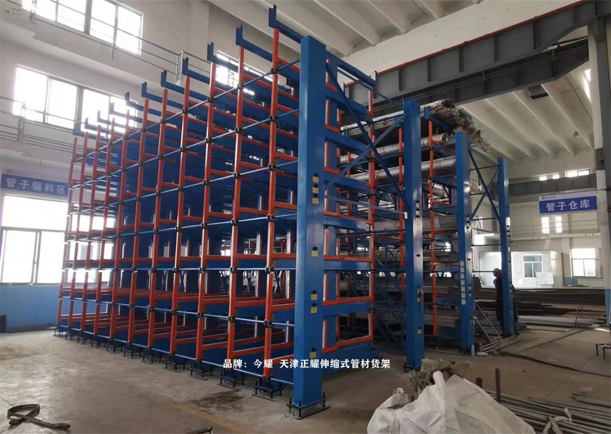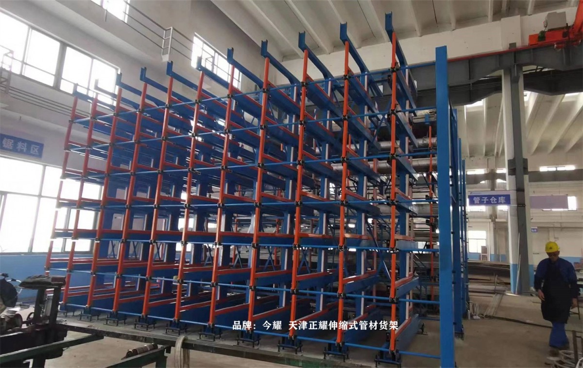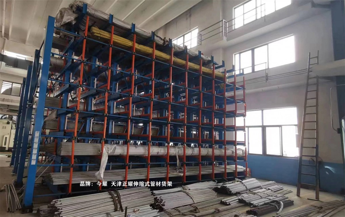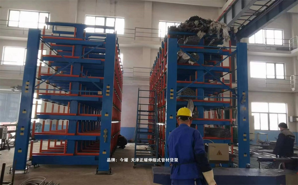In a Jiangsu-based factory, a high-position manual telescopic tube material shelf has been put into use.