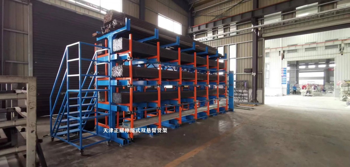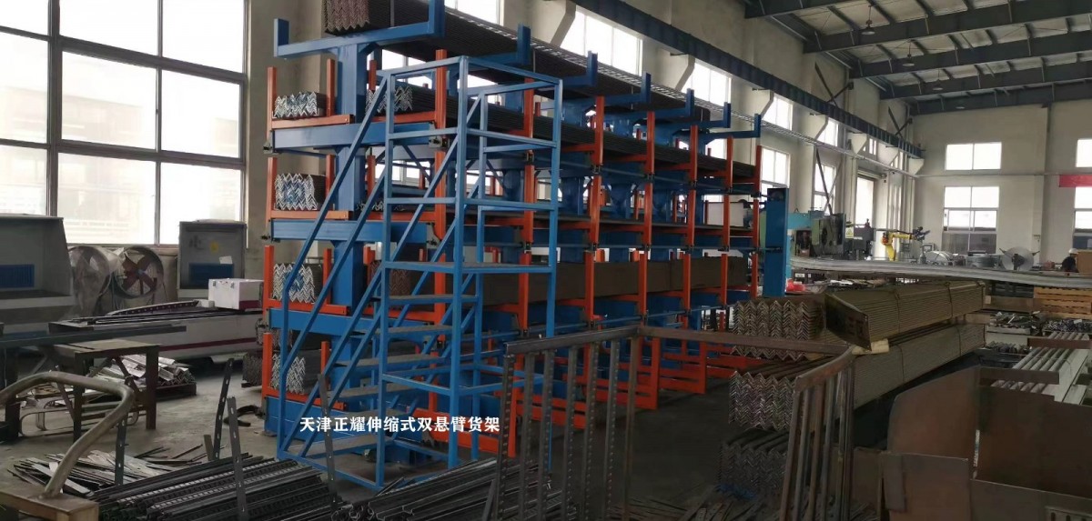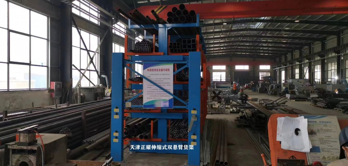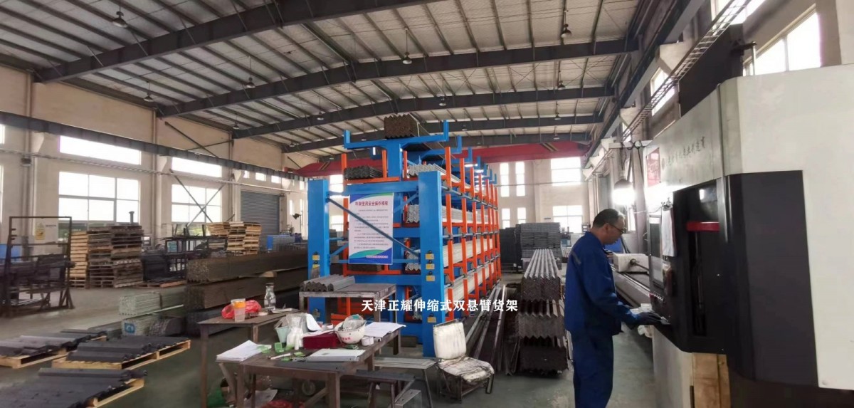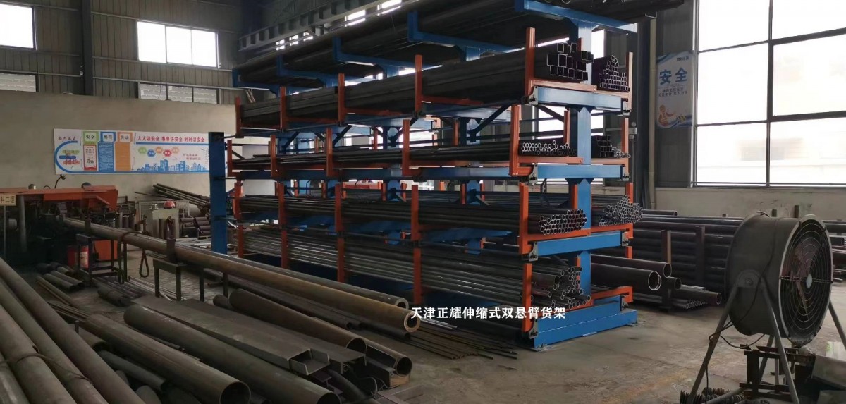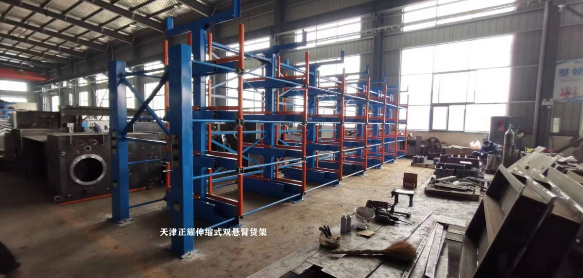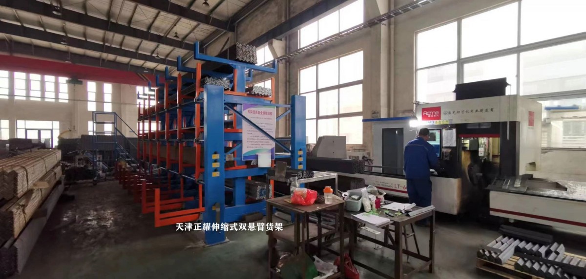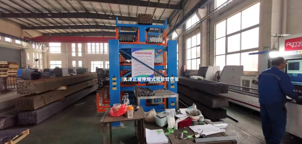 In a workshop in Yangzhou, the heavy-duty telescopic cantilever racking has been fully installed.