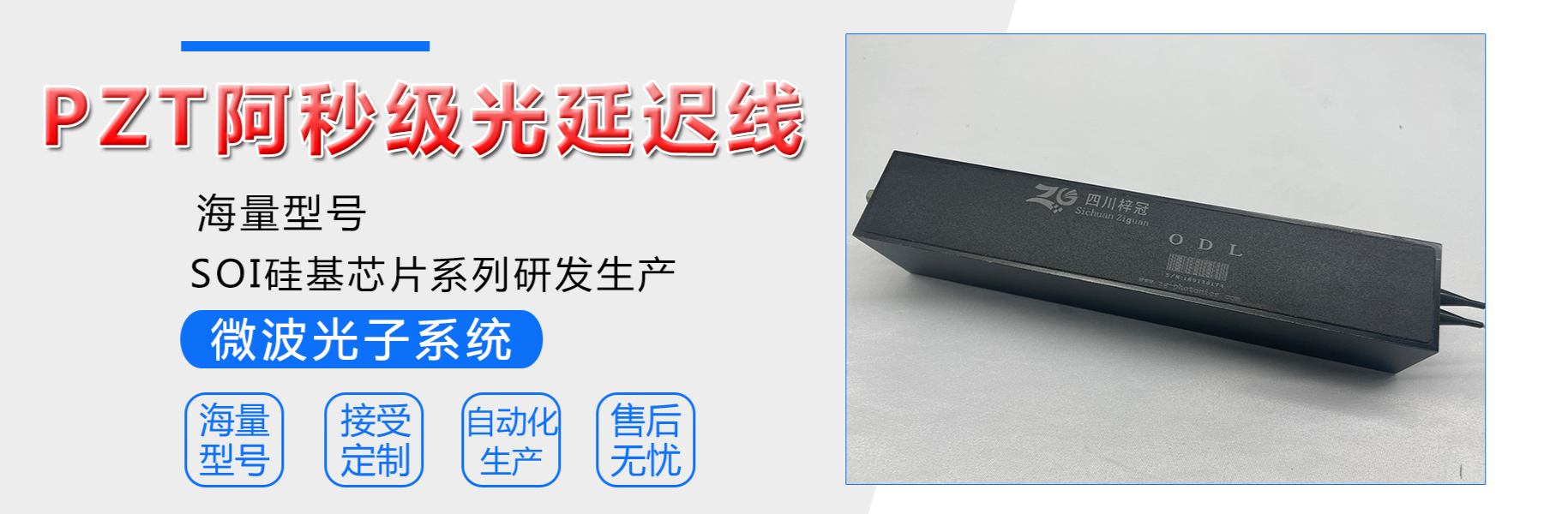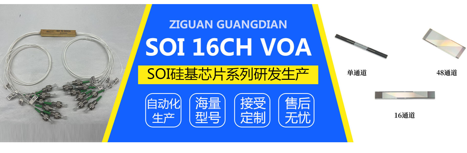Sichuan Ziguang Optoelectronics Technology Co., Ltd. was established in March 2015, located in the Science and Technology City of China - Mianyang. The company is primarily committed to the research, design, production, and sales of optical communication equipment and optical communication chips; it is a high-tech optical communication enterprise with independent research and development capabilities and large-scale mass production capacity.