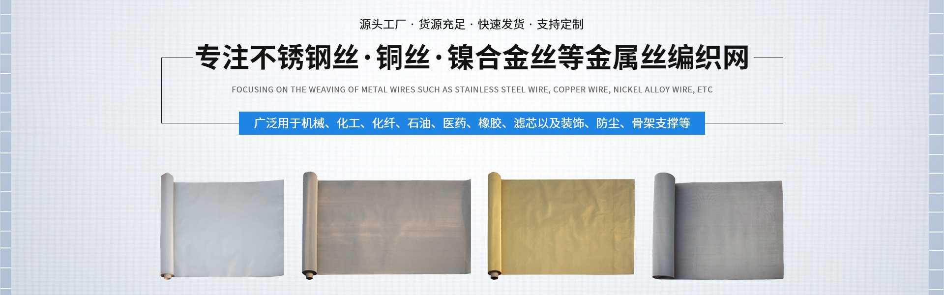公司主营:Metal wire woven screens, standard abrasive grading screens, filter nets, standard sieves, test sieves