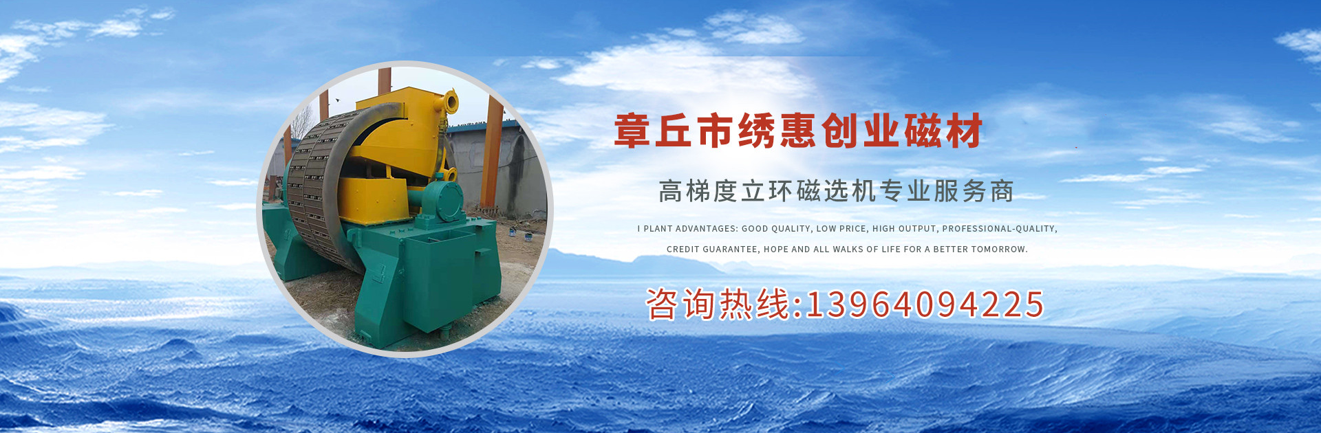 Zhangqiu Xiuwei Entrepreneurship Magnet Material Processing Factory is a professional manufacturer of second-hand high-gradient ring magnetic separator, offering second-hand equipment from various manufacturers. We are responsible for installation, debugging, and trial operation, and provide a one-year warranty. Our main products include: water-cooled ring magnetic separator models 1250, 1500, 1750, 2000, 2500; oil-cooled ring magnetic separator models 1250, 1500, 1750, 2000, 2500; electromagnetic slurry machine models 530, 800, 1000; flat magnetic separator; high-strength magnet recovery, etc.