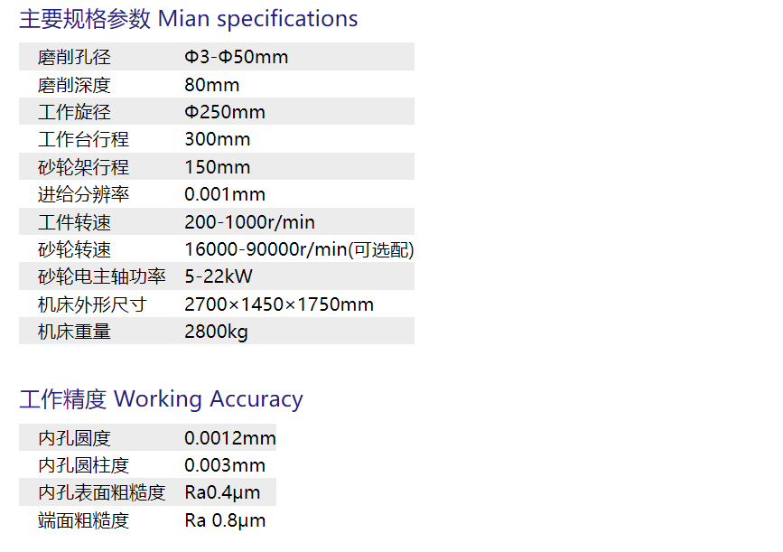 The machine tool worktable and feeding guide rail are both equipped with imported high-rigidity linear guides, featuring strong load-bearing capacity, good follow-up performance, and high running accuracy.