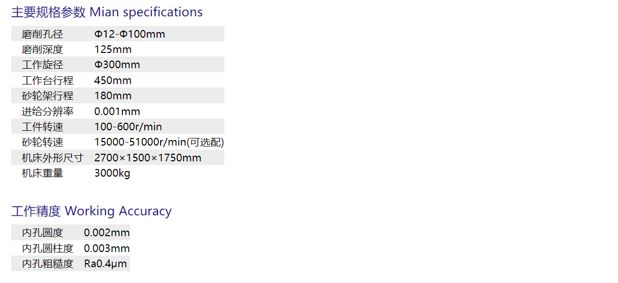 The abrasive wheel spindle is equipped with a high-power, high-rigidity electric abrasive wheel shaft, powered by a static variable frequency drive.