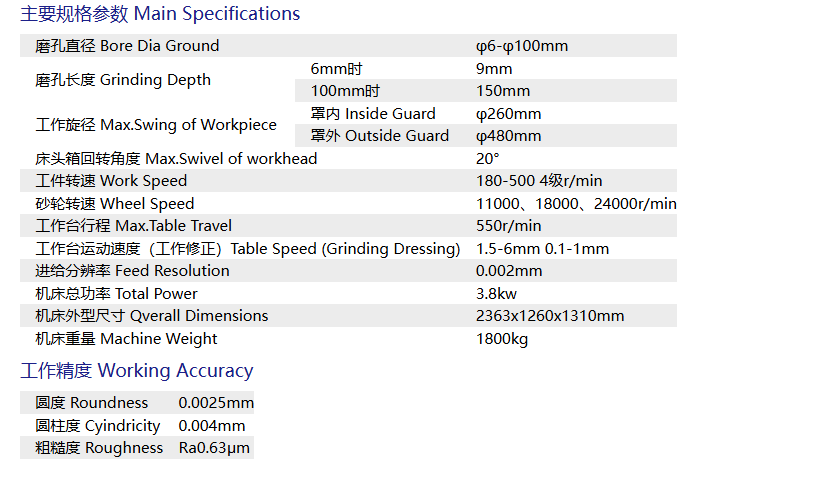 The feeding and compensation of machine tools are executed by two independent drive mechanisms. The feeding system features fixed-length grinding capability, utilizing either manual or hydraulic feeding methods.