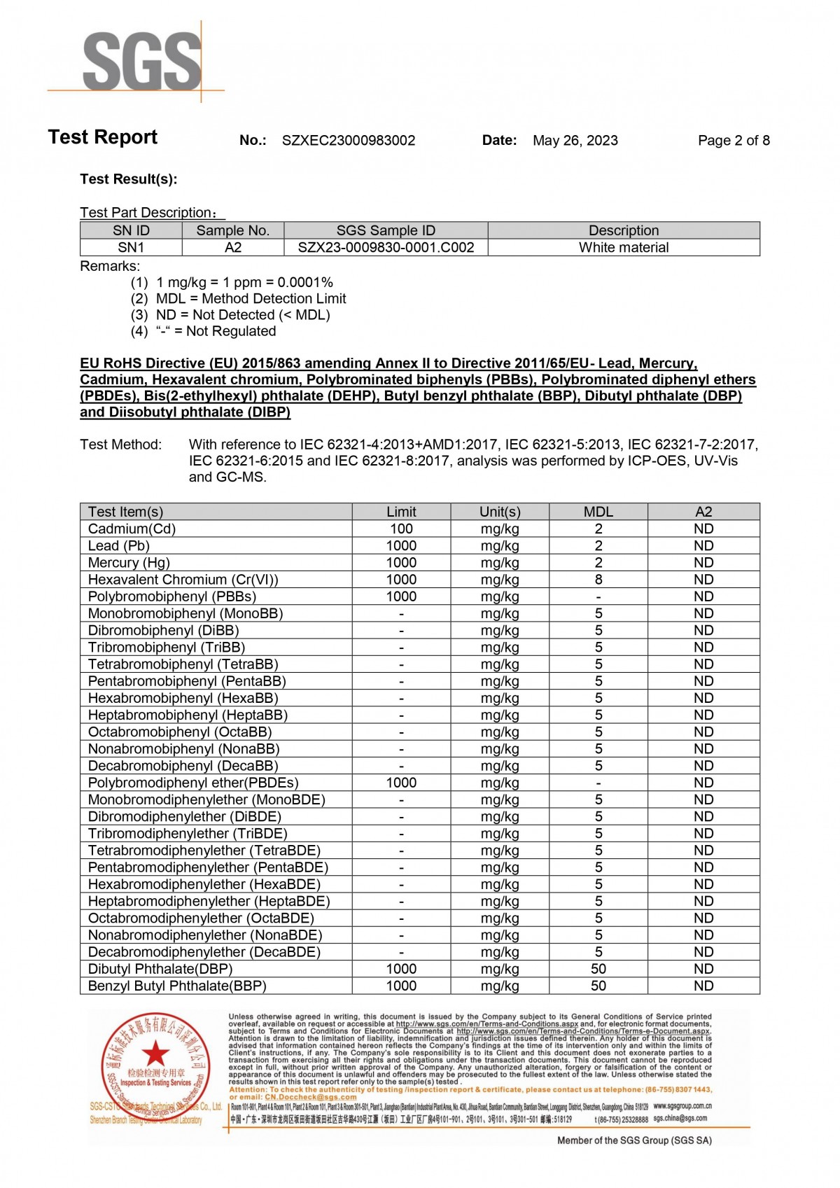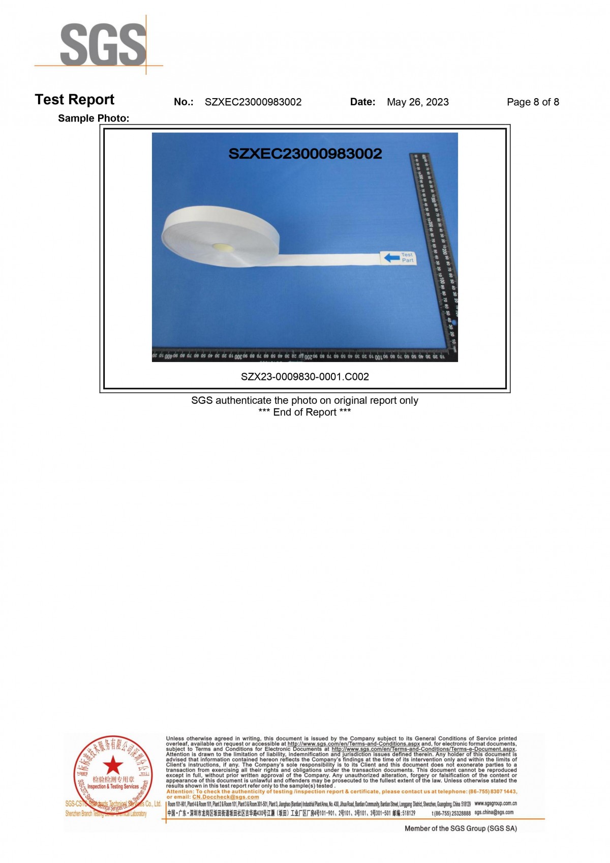 | Issuing Authority: | SGS通标标准技术服务有限公司 | Issue Date : | 2023-05-26 |