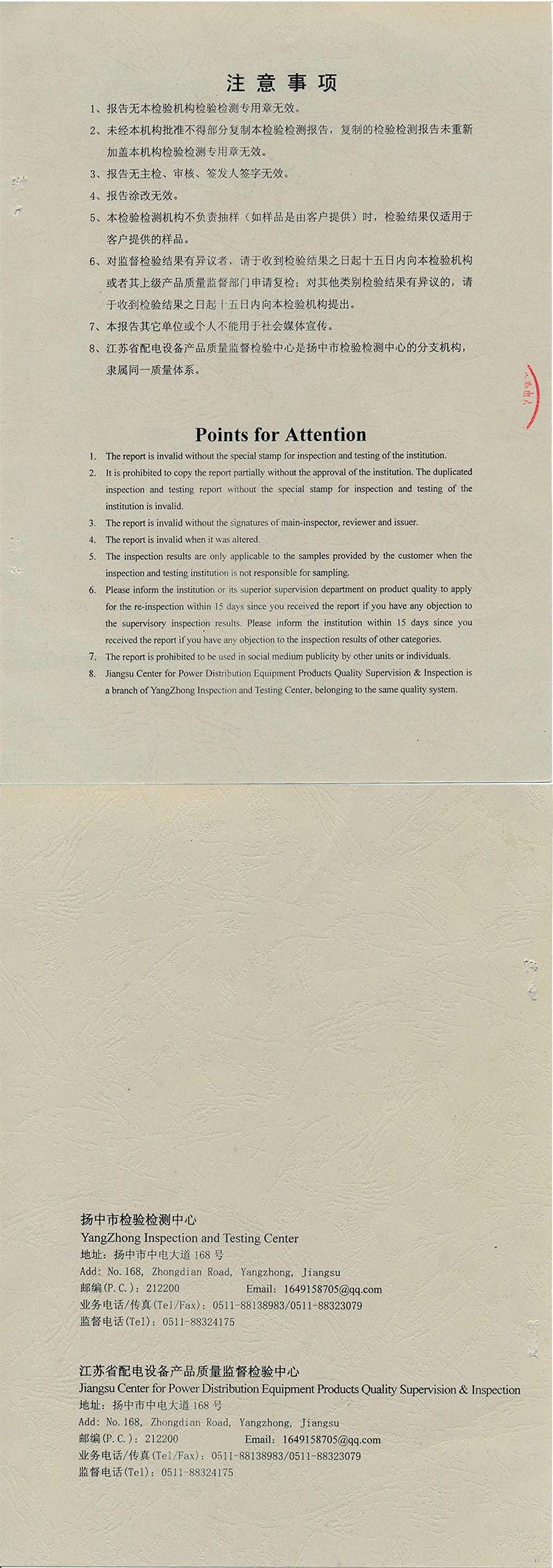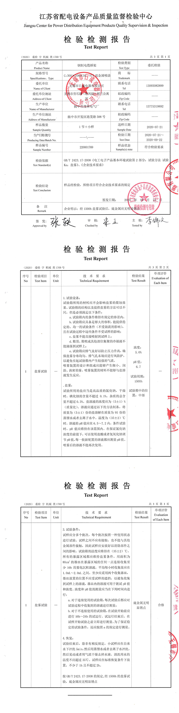 | 发证机构: | 江苏省配电设备产品质量监督检验中心 | 发证时间 : | 2020-09-23 |