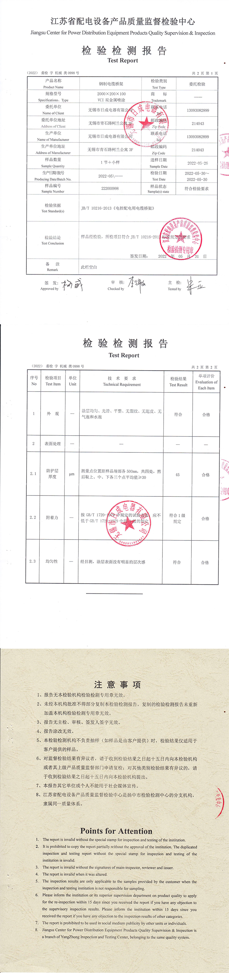 | 发证机构: | 江苏省配电设备产品质量监督检验中心 | 发证时间 : | 2022-05-31 |
