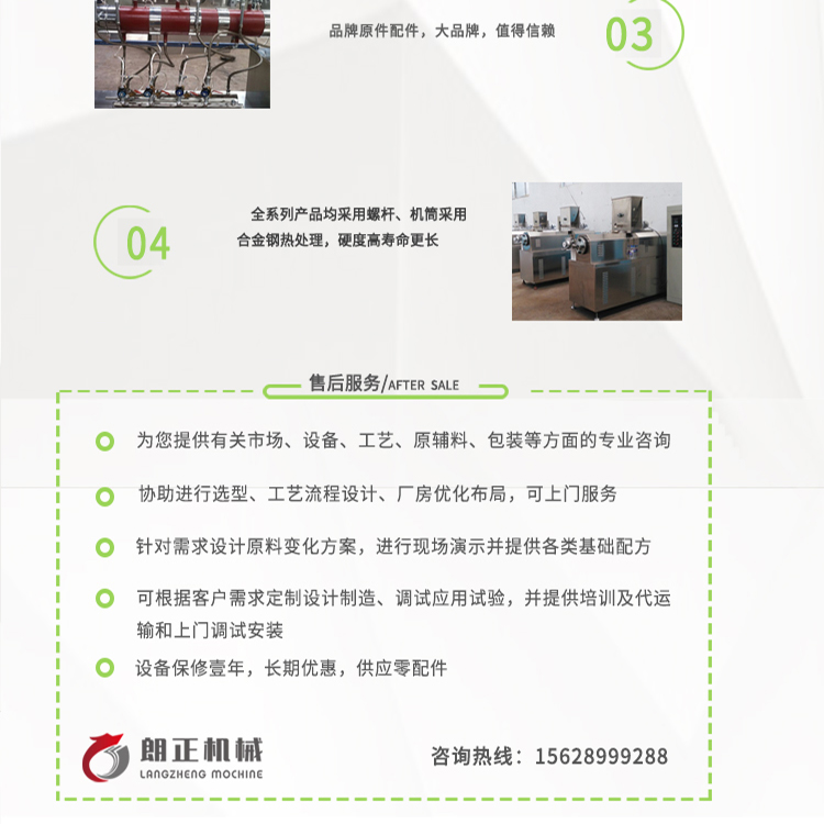 Company Profile: Well-known enterprise in Shandong Province, China——Shandong Langzheng Machinery Equipment Co., Ltd., located in Jinan, China. "Langzheng Machinery" is a large-scale producer in the Chinese food equipment industry, with independent import and export rights. "Langzheng Machinery" has passed the ISO9001:2000 quality certification system and strives for excellence in the industry. For many years, the company has been engaged in the research and development of puffing equipment, operating single/dual screw extrusion main machines, pasta and spaghetti production lines, biscuit equipment, snack food production lines, pet food production lines, aquatic feed processing equipment, and has a strong capability in the design, manufacturing, and engineering of non-standard equipment, with substantial achievements and impressive performance. The products are distributed nationwide and also reach countries such as the United States, Argentina, Indonesia, Taiwan, Israel, South Africa, Sudan, South Korea, Thailand, Vietnam, Indonesia, and the Philippines. Company specializes in"Striving to become a model in the food machinery industry and create a national brand, we have gathered a large group of high-level, high-quality professionals; we utilize advanced MRP systems to effectively organize, coordinate, standardize, and control the company's resources and the entire production and business processes; concurrently, we engage in technical exchanges with relevant research institutions and industry veterans to continuously enhance our R&D innovation capabilities. We strive to build a strong enterprise with 'powerful talents, powerful management, powerful technology, and powerful equipment'." CompanyComply with the ISO9001-2009 international quality management system, strictly implement site management according to "ISO" standards, and all product lines have passed CE safety certification. The company has created over a dozen domestic innovations in product development.* holds over forty national patents. The brand is a renowned product; the trademark is * Trademark; the machinery is one of the leading brands in the Chinese extrusion food machinery industry. Our company adheres to"Strive for authenticity, substance, specialization, refinement, strength, and longevity" in business principles, with quality as the foundation, innovation as the soul, and customers as the pride and respect. Leverage the company's professional technology, management, and advanced equipment capabilities to the fullest, delivering high-quality products and comprehensive solutions with the artisan spirit of "delicate craftsmanship and dedicated service." Dedicated to becoming a global partner in the food industry, currently already having...Over 300 sets of equipment are serving developed countries and regions in Europe and America, such as the United States, the United Kingdom, Russia, Italy, France, Spain, and Japan; thousands of sets are serving various large and medium-sized food manufacturing enterprises domestically. In the fierce market competition, we look forward to joining hands with you to weather the storms and forge brilliance together!