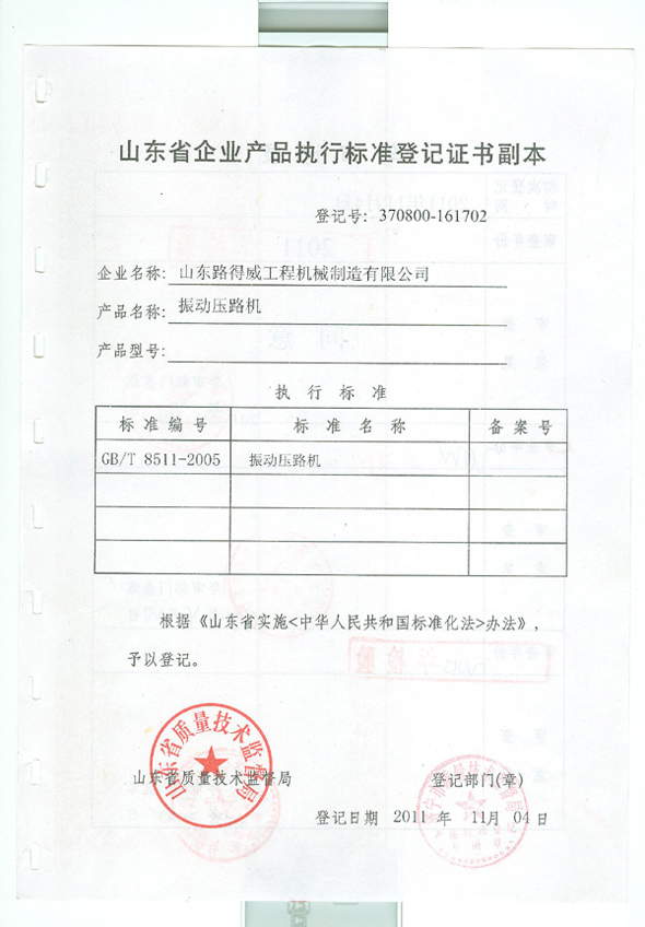 | 发证机构: | 山东省质量技术监督局 | 发证时间 : | 2011-03-11 |