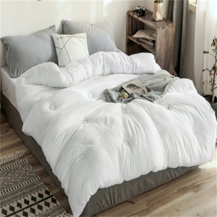 Comforters are a type of bedding, consisting of rectangular fabric large enough to cover the body, commonly used for warmth during sleep. They are typically made with cotton batting enclosed in a cover or sheet, and those made of cotton are known as cotton comforters. Besides cotton, they can also be made from wool, silk, acrylic fibers, or other artificial fibers. Basic Explanation: Comforters are generally made with fabric or silk as the outer layer, with cotton, silk, or down as the filling, serving as warm coverings for use on the body while sleeping.