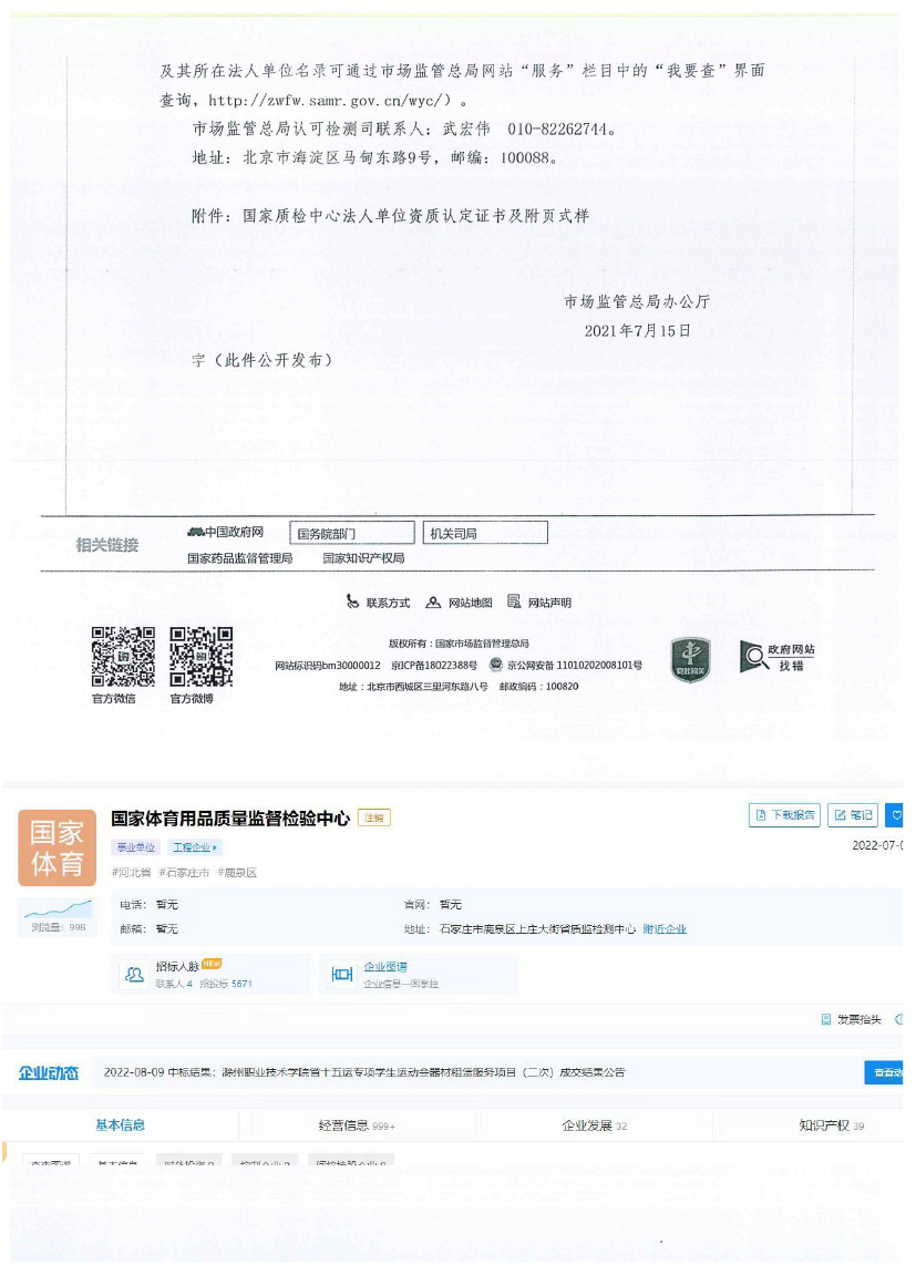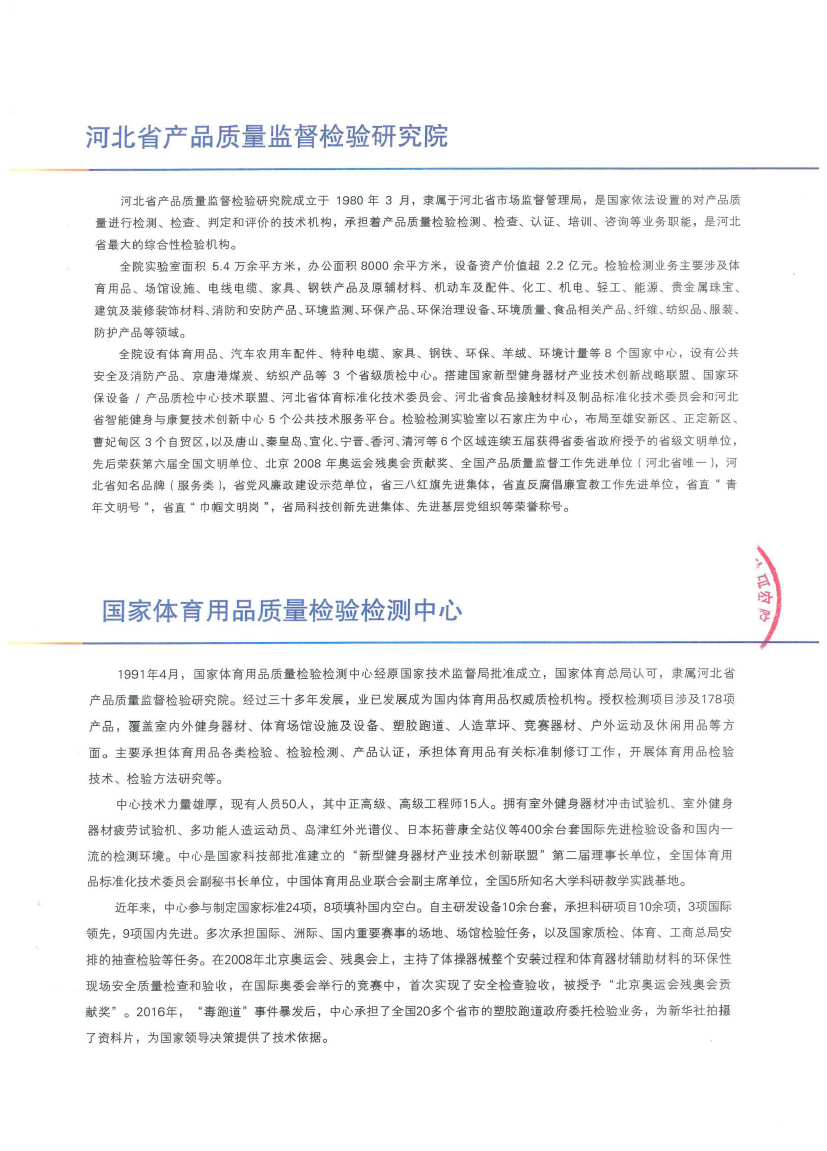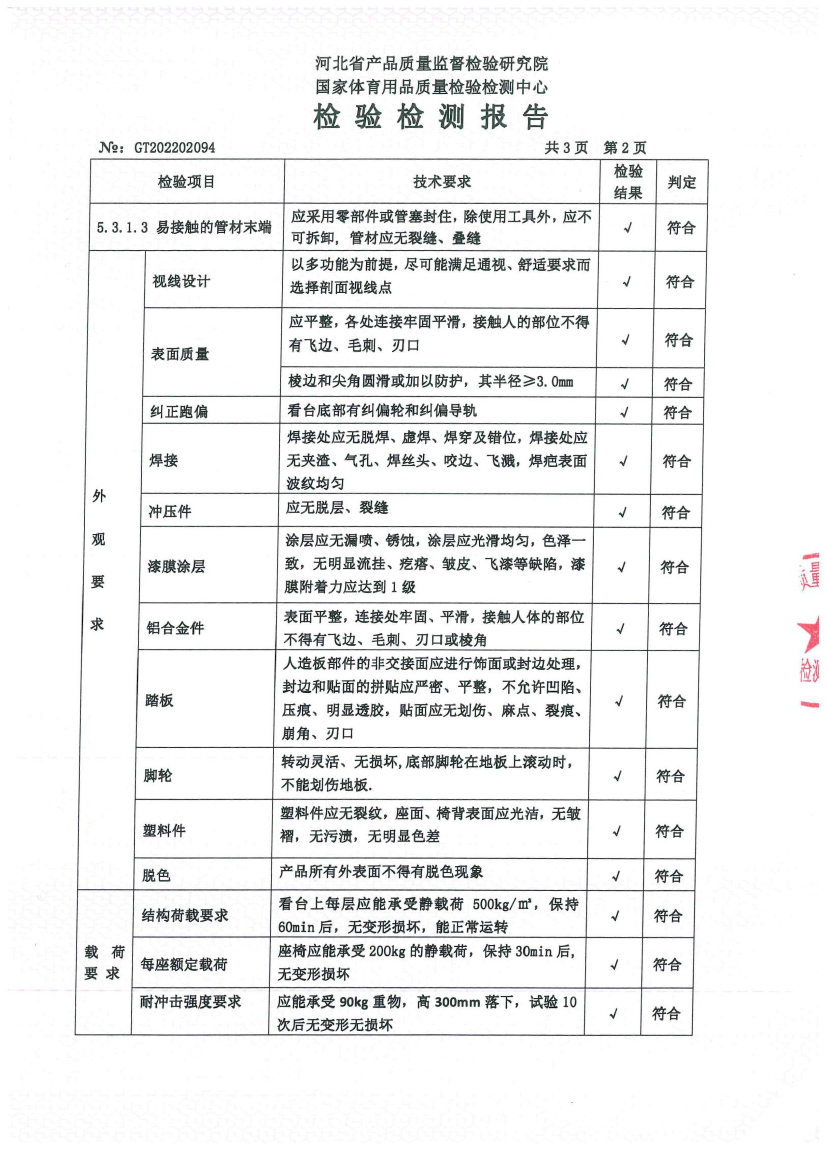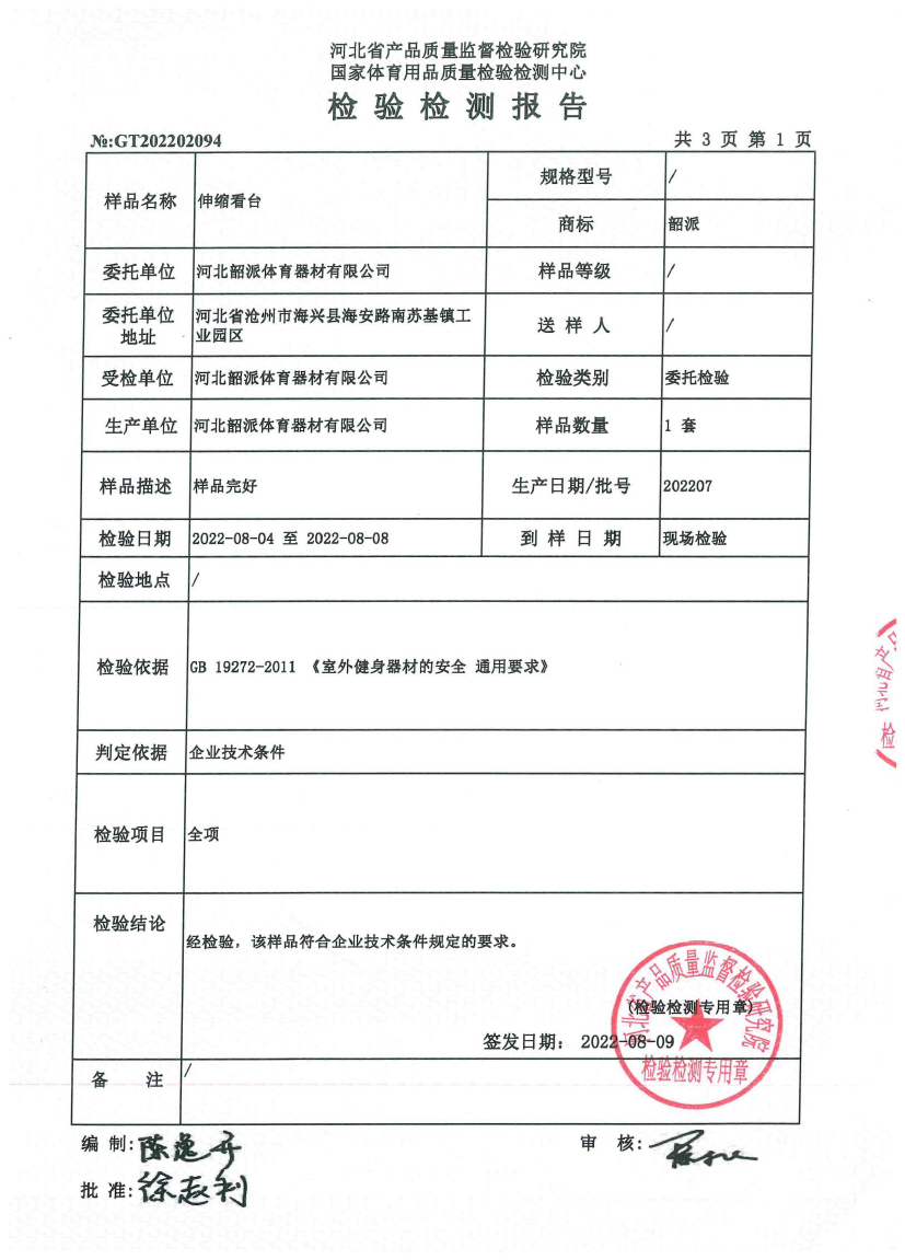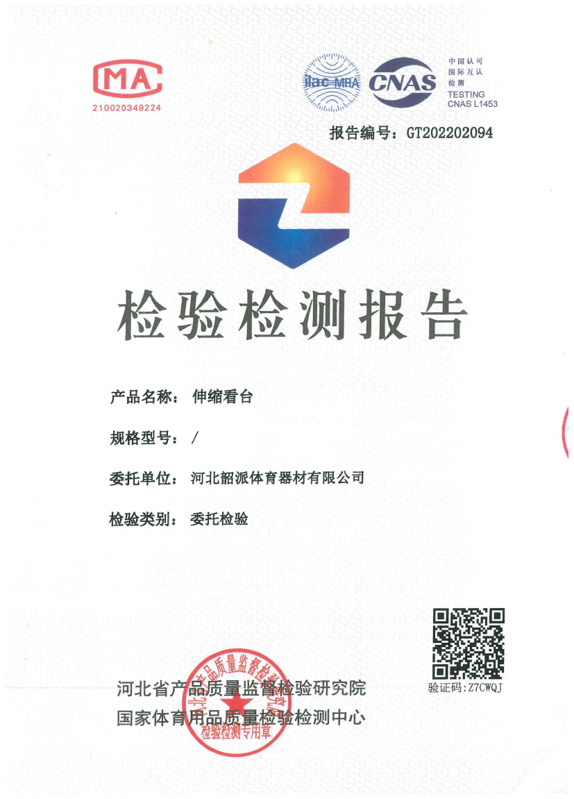 Qualification Certificate Co., Ltd. > 河北韶派体育器材有限公司伸缩看台检测报告