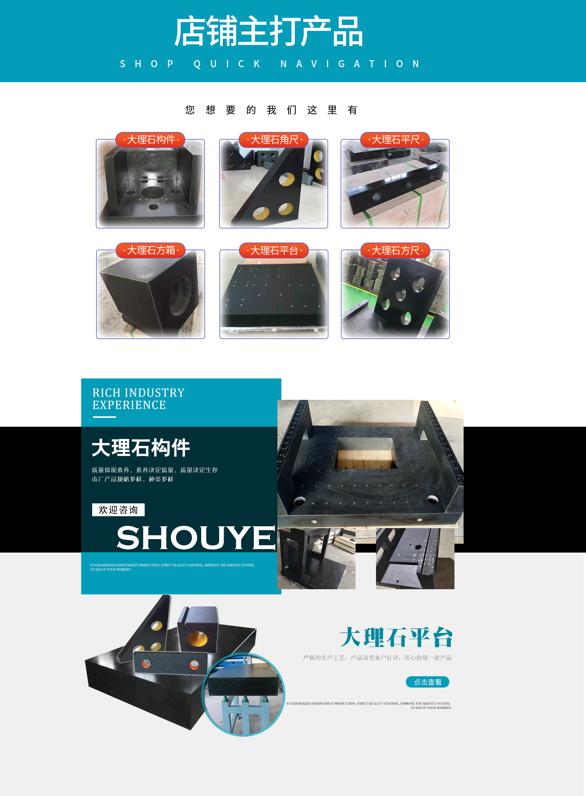 Cast iron plates, marble measuring tools, precision measuring instruments, th...