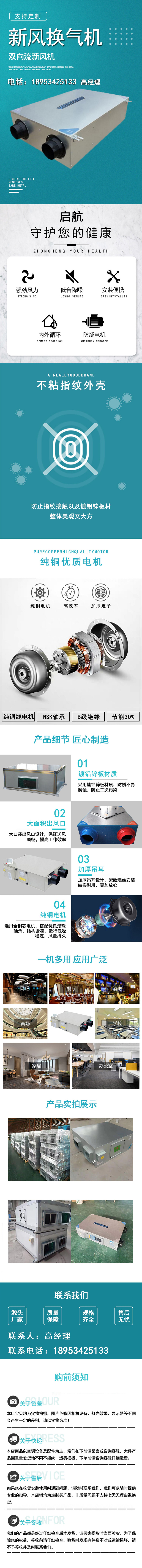 Air-to-Air Exchanger, Central Air Handling System, High-Volume Full Heat Recovery Ventilator, Low-Noise Ceiling-Mounted Air Purifier