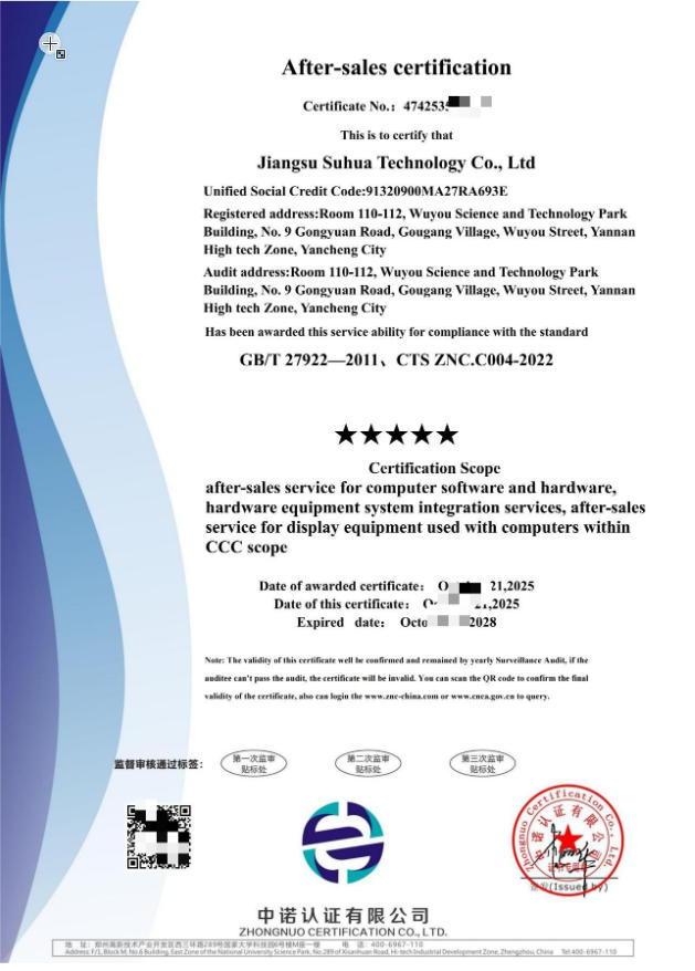 | 发证机构: | 中诺认证有限公司 | 发证时间: | 2025-10-21 |