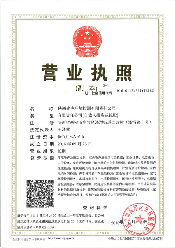 | 发证机构: | 西安市高陵区市场监督管理局 | 发证时间 : | 2018-11-06 |