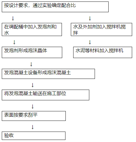 The raw materials (cement, foaming agent, water) used in foam concrete should have product certification and performance test reports. The types, specifications, and properties of the materials should comply with the current national product standards.