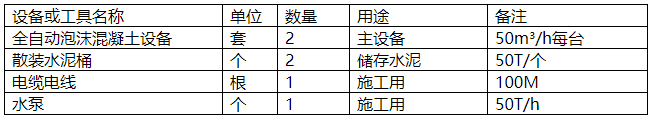 (2) Equipment used for foam concrete construction: Foam concrete machinery, water pipes, pumps, shovels, measuring tapes, ropes, buckets, etc. After all equipment is delivered to the construction site, it should be inspected, adjusted, and confirmed to be free of malfunctions by a professional technician before proceeding with the construction.
