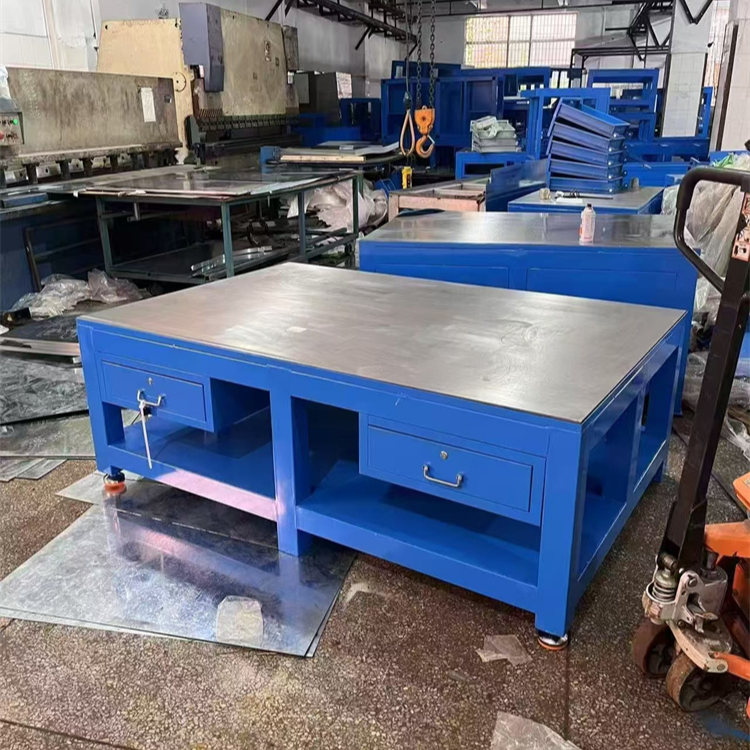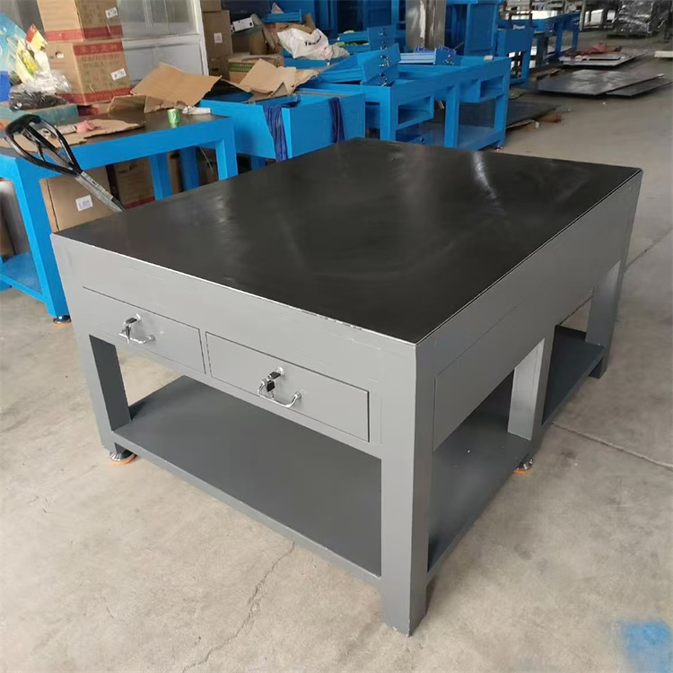 Workbench for Machinists: Also known as a vise bench, primarily divided into assembly workbench, marking workbench, and inspection workbench. Assembly Workbench: Equipped with T-slot for securing workpieces, mainly used for adjusting and assembling machinery, serving as the fundamental platform for machinists. Inspection Workbench: Suitable for various inspection tasks, the reference plane for precision measurements, used as the benchmark for machine tool mechanical inspections, to check the size accuracy or behavior deviation of parts, and for precise marking. It is an indispensable basic tool in mechanical manufacturing inspections. Marking Workbench: The flat surface is marked with reference lines, used by machinists to inspect workpieces and as a benchmark for marking workpieces. The specific size of the marking lines is determined by the user according to their usage. Machinist Workbench Material: Ductile cast iron HT200-300, working surface hardness of HB170-240, treated twice by hand (artificial annealing at 600-700 degrees and natural aging for 2-3 years), ensuring good precision and wear resistance. Machinist Workbench Specifications: 200×200—2000×4000 (special specifications are made according to the customer's drawings or agreed upon by both parties for processing or production).
