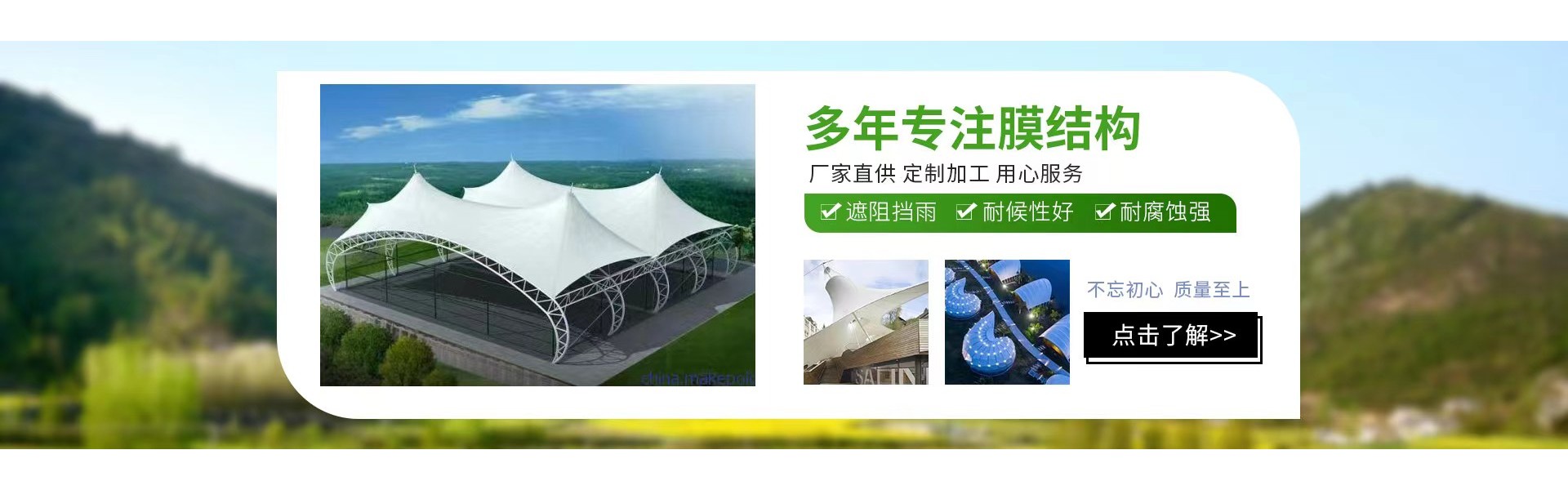 Membrane structures, tensioned membrane structures, PTFE membrane structures, ETFE membrane structures, steel structure engineering, curtain wall engineering, interior decoration and renovation projects, environmental engineering, landscape engineering, architectural design and construction; technical development and sales of membrane materials, building materials, decorative materials, sunshades, and portable tents.