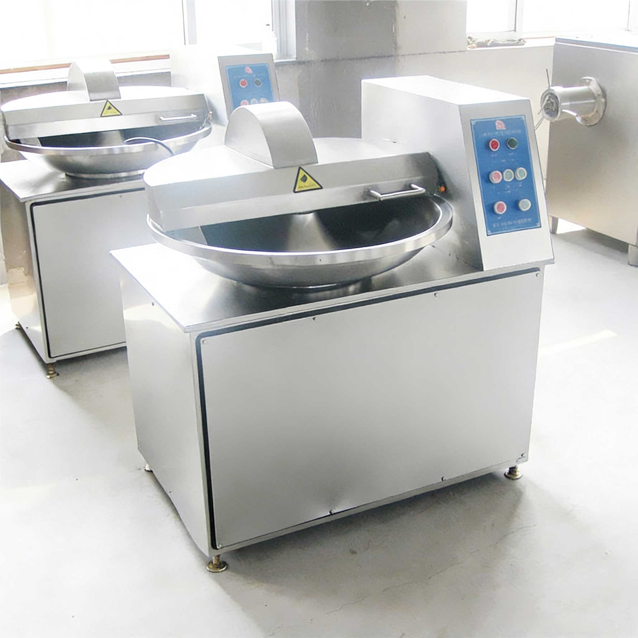 Chop and blend machines are a crucial piece of equipment in the meat product production process. The high-speed rotating blades can chop and blend raw meat into a fine paste, while also mixing other ingredients evenly. They are an indispensable piece of meat processing machinery for hotels, restaurants, canteens, and meat processing facilities.