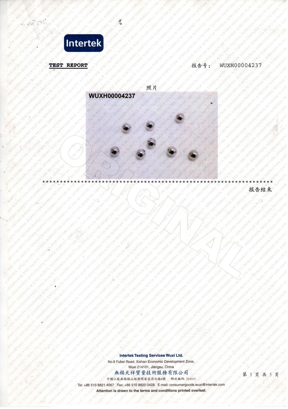 Intertek_Honor Qualification Co., Ltd._Changzhou Su_nan Wei Jie Steel Ball Co., Ltd.