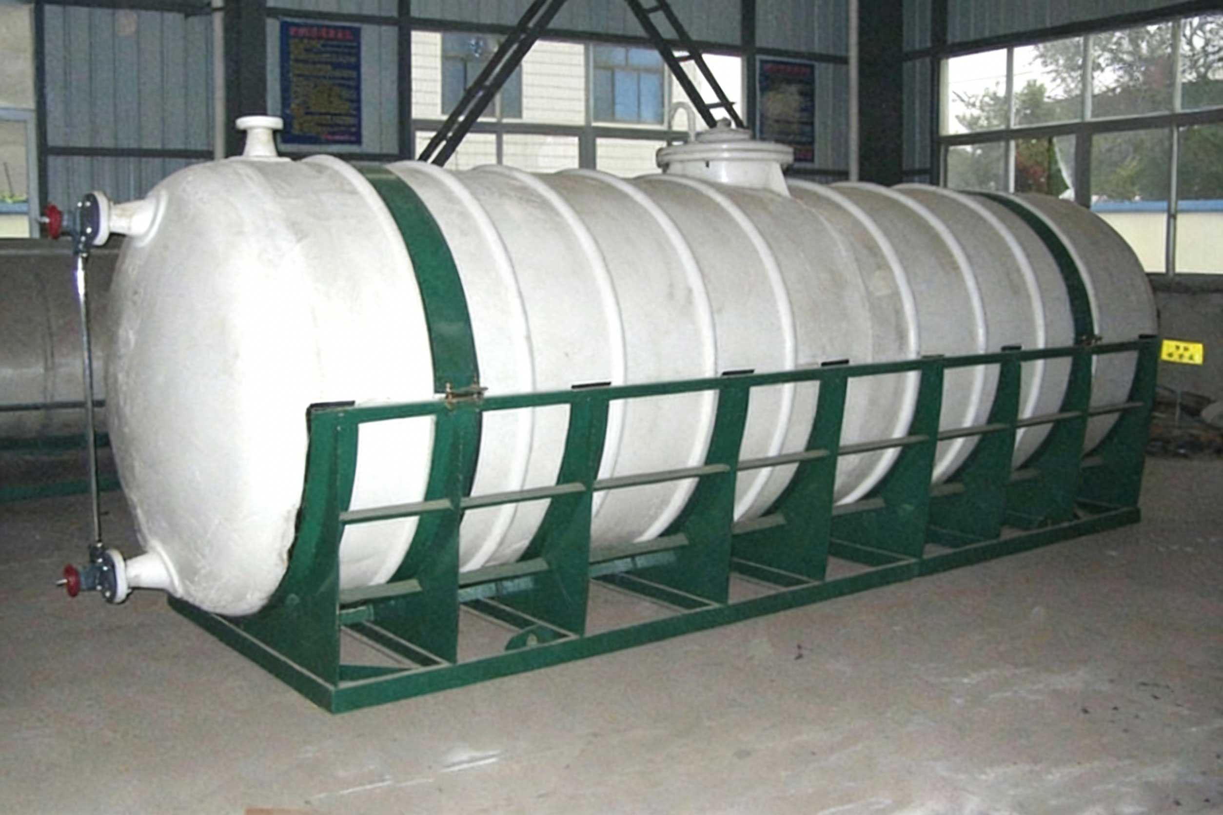 Steel-lined plastic reagent sulfuric acid, battery sulfuric acid, analytical pure sulfuric acid, high purity sulfuric acid tanks: Concentrated sulfuric acid can generally be stored in standard carbon steel tanks, but concentrated reagent sulfuric acid, battery sulfuric acid, analytical pure sulfuric acid, and high purity sulfuric acid have higher requirements. Using standard carbon steel tanks for storage can lead to discoloration and excessive iron ions. Our company's steel-lined plastic tanks solve this problem of discoloration and excessive iron ions. They are currently in use in many sulfuric acid plants, battery factories, power supply factories, and chemical plants with good performance (please use under our company's guidance).