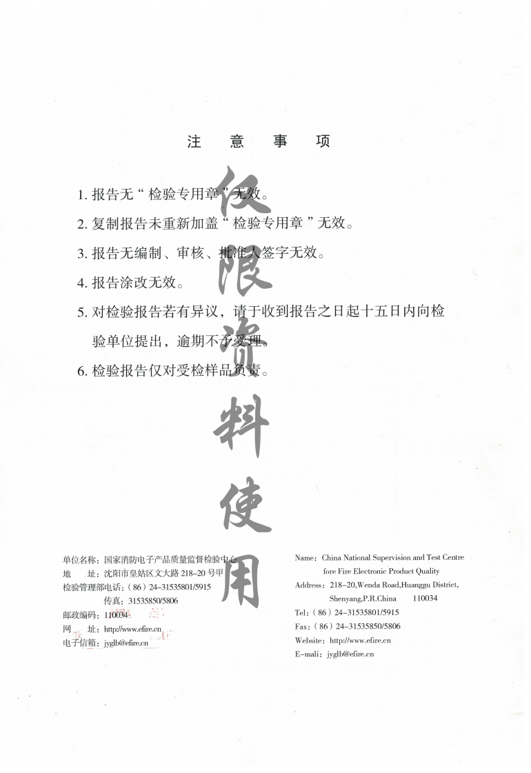 国家消防电子产品质量监督检验中心检验报告