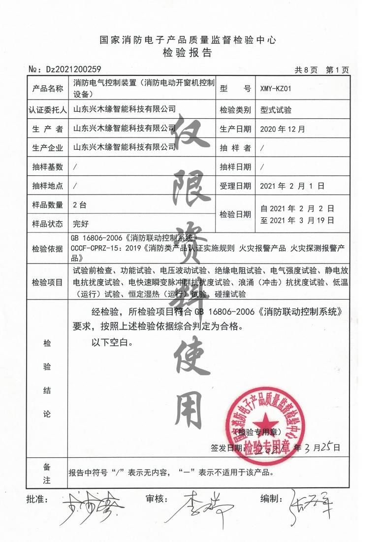 国家消防电子产品质量监督检验中心检验报告_Honor Qualification Co., Ltd._Shandong Xingmu Yuan Intelligent Technology Co., Ltd.