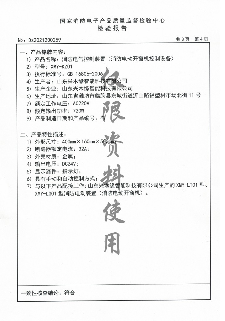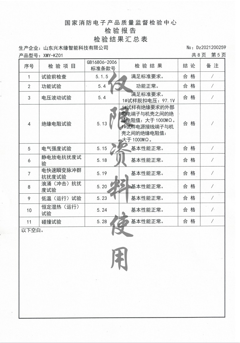 Home > Honor Qualification Co., Ltd. > 国家消防电子产品质量监督检验中心检验报告