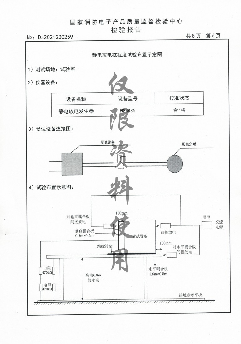 证书名称: 国家消防电子产品质量监督检验中心检验报告