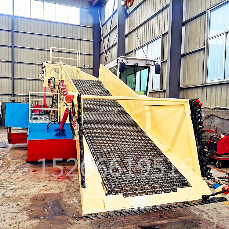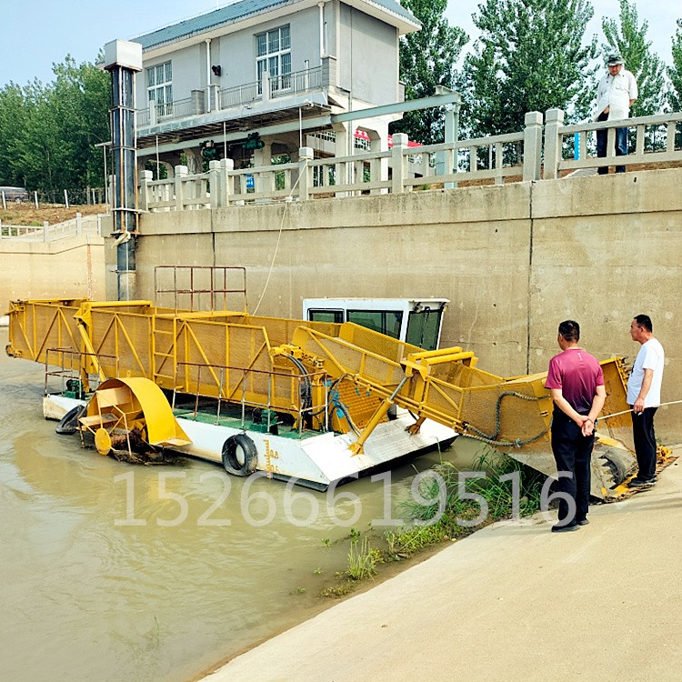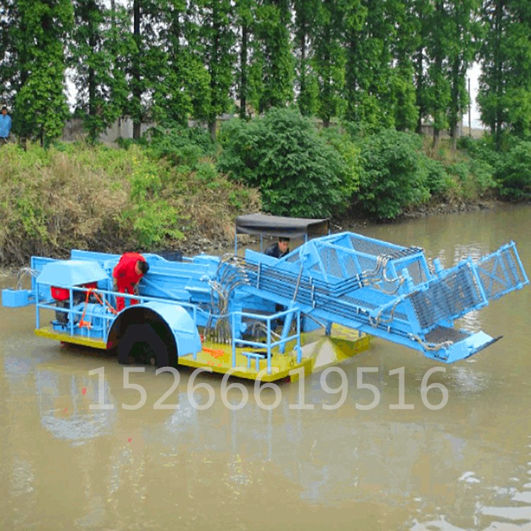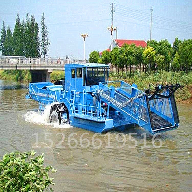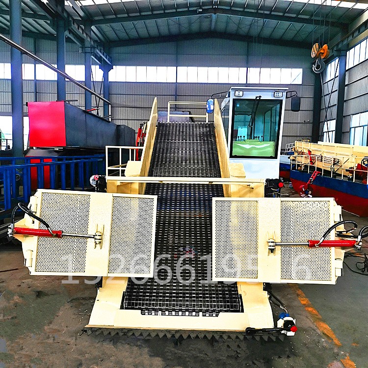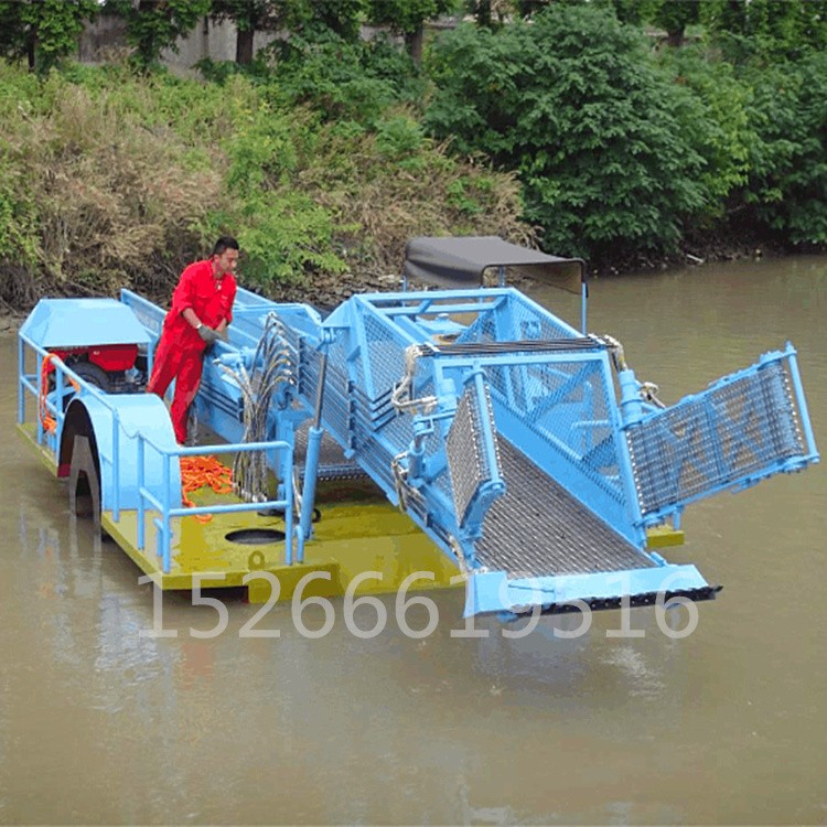 该设备主要用于清除水中杂草、塑料袋及废弃物等漂浮物,因为用途不同,又被细分为保洁船、打捞船、水草破碎船等。根据用户现场不同性质的水生植物,该清理船船艏前部相应配有切割刀、轮刀、破碎刀、横向剪刀、立式剪刀、立向收集链和主收集链,用于切割、收集或者破碎水生植物和漂浮物。