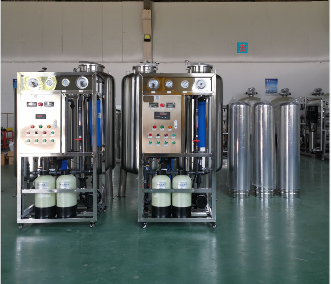 Principle: Osmosis is a physical phenomenon where water from two bodies of water with different salt concentrations, separated by a semi-permeable membrane, will pass through the membrane until the salt concentrations are equalized. However, this process takes a long time and is known as natural osmosis. If a pressure is applied to the side with higher salt concentration, it can stop the osmosis, and this pressure is called osmotic pressure. Increasing the pressure can cause water to渗透 in the opposite direction, leaving the salt behind. Therefore, the principle of reverse osmosis desalination is to apply a pressure greater than the natural osmotic pressure to saltwater (such as raw water), causing the water molecules to be pushed to the other side of the membrane, resulting in clean water. This process removes salt from the water, hence the principle of reverse osmosis desalination.