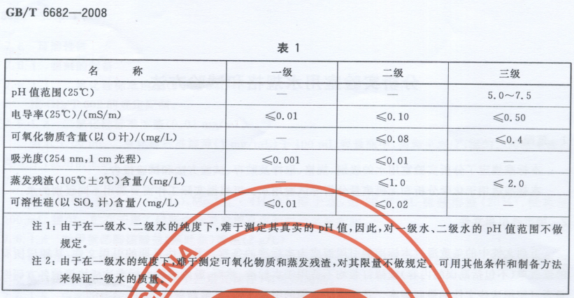 Section 3: GBT 6682-2008 Specifications for Laboratory用水