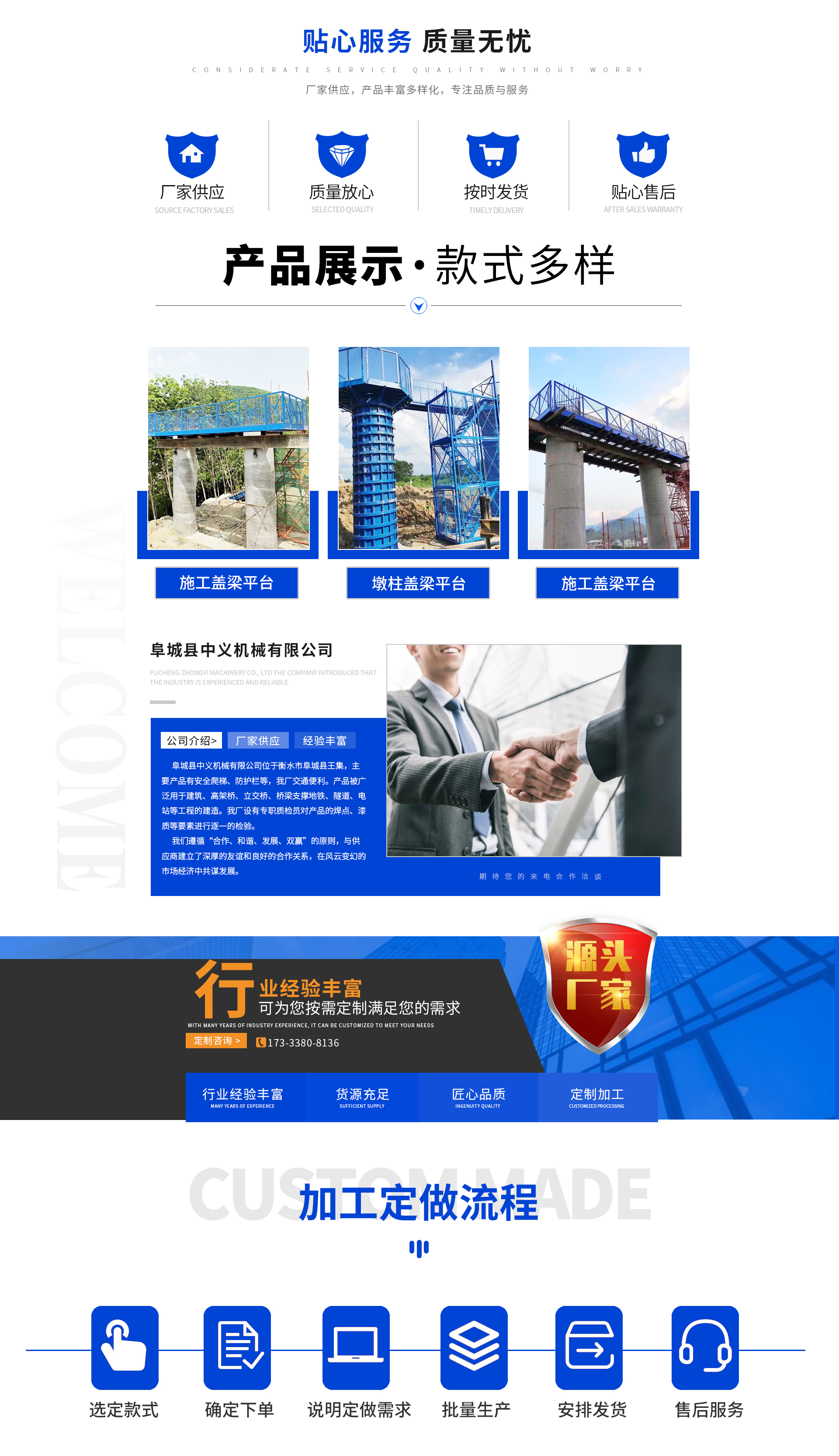 Fucheng County Zhongyi Machinery Co., Ltd. is located in Wangji Town, Fucheng County, Hengshui City. Our main products include safety ladders and guardrails, and our factory is conveniently accessible. Our products are widely used in the construction of buildings, elevated bridges, flyovers, bridge supports, subway lines, tunnels, power stations, and more. We have dedicated quality inspectors in our factory who carry out individual inspections of the welding points and paint quality of our products.We adhere to the principles of "cooperation, harmony, development, and win-win," fostering a deep friendship and excellent cooperative relationship with our suppliers, and striving for common development amidst the ever-changing market economy.We adhere to our corporate philosophy of "constant innovation, dedicated service, and joint brilliance." In the face of increasingly fierce market competition, we continuously introduce new products with efficiency and quality to meet the diverse ne...