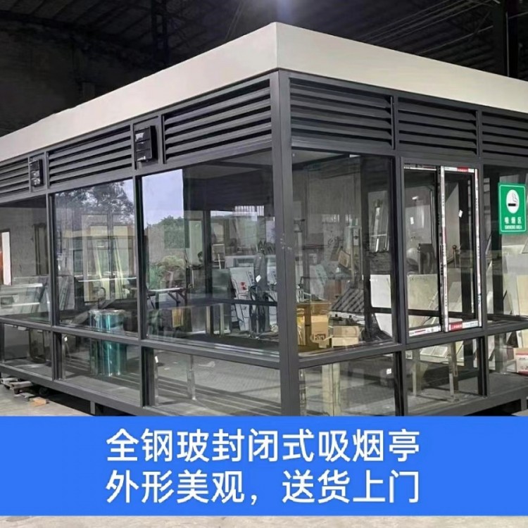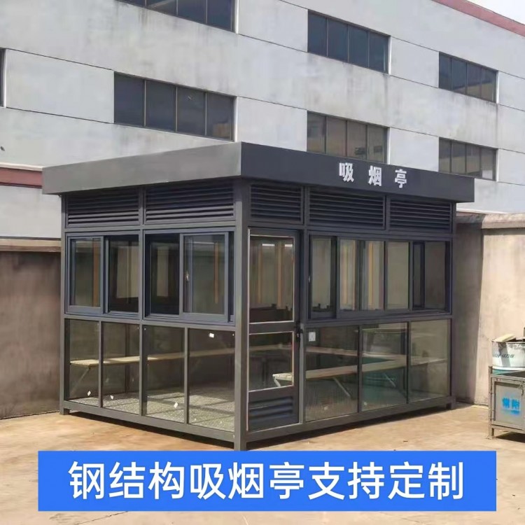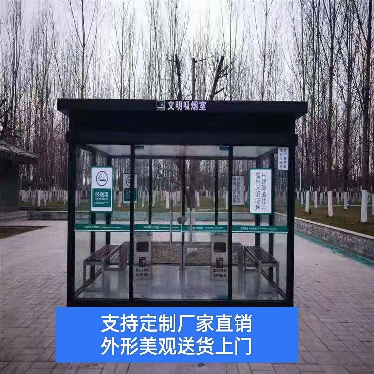 吸烟亭常用规格:1.5*2.0*2.6、2.0*2.0*2.6、2.0*3.0*2.6、2.0*4.0*2.8、